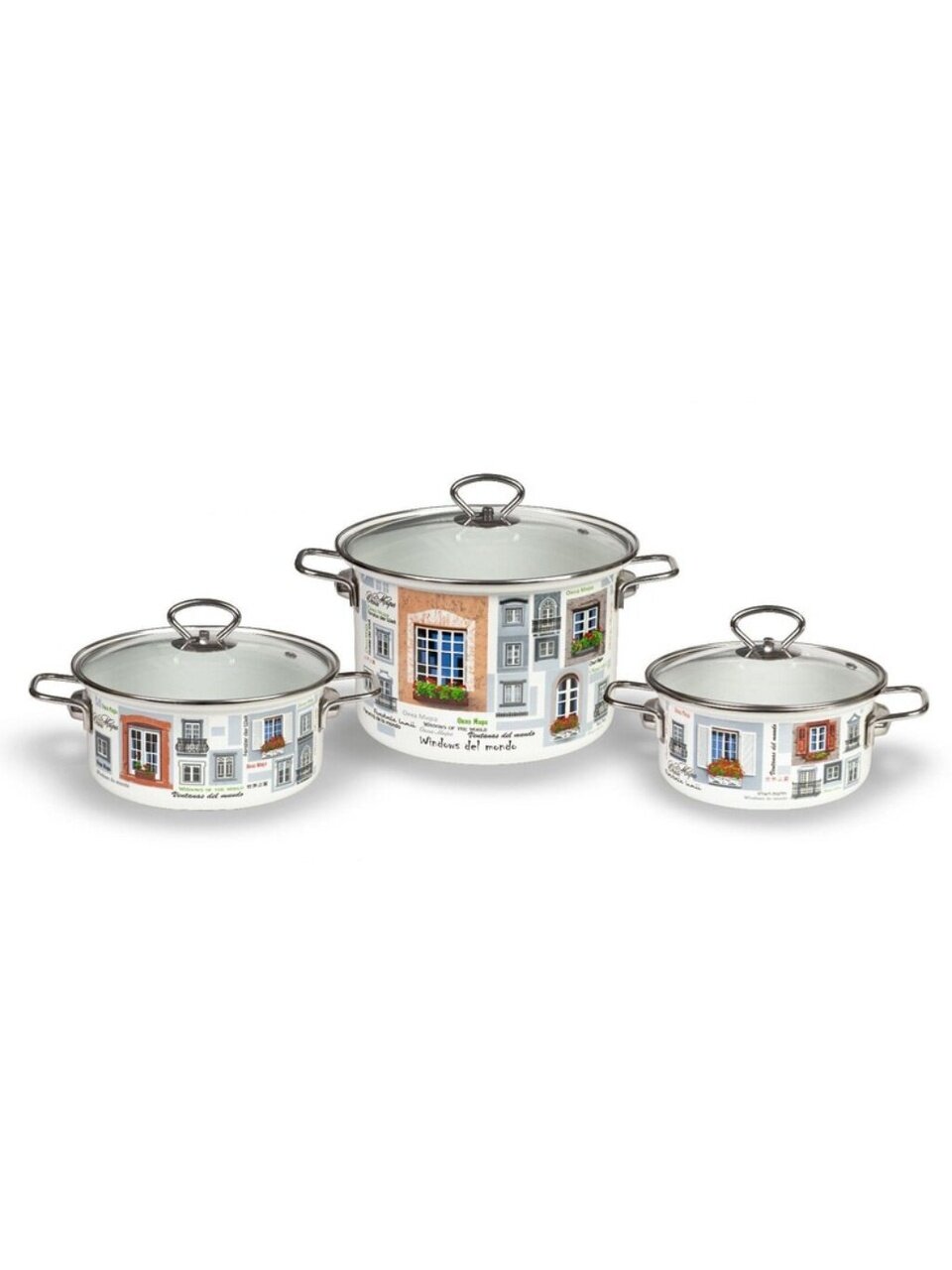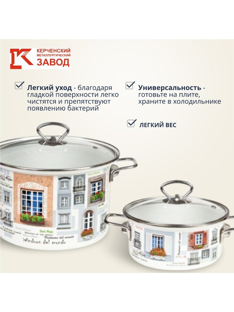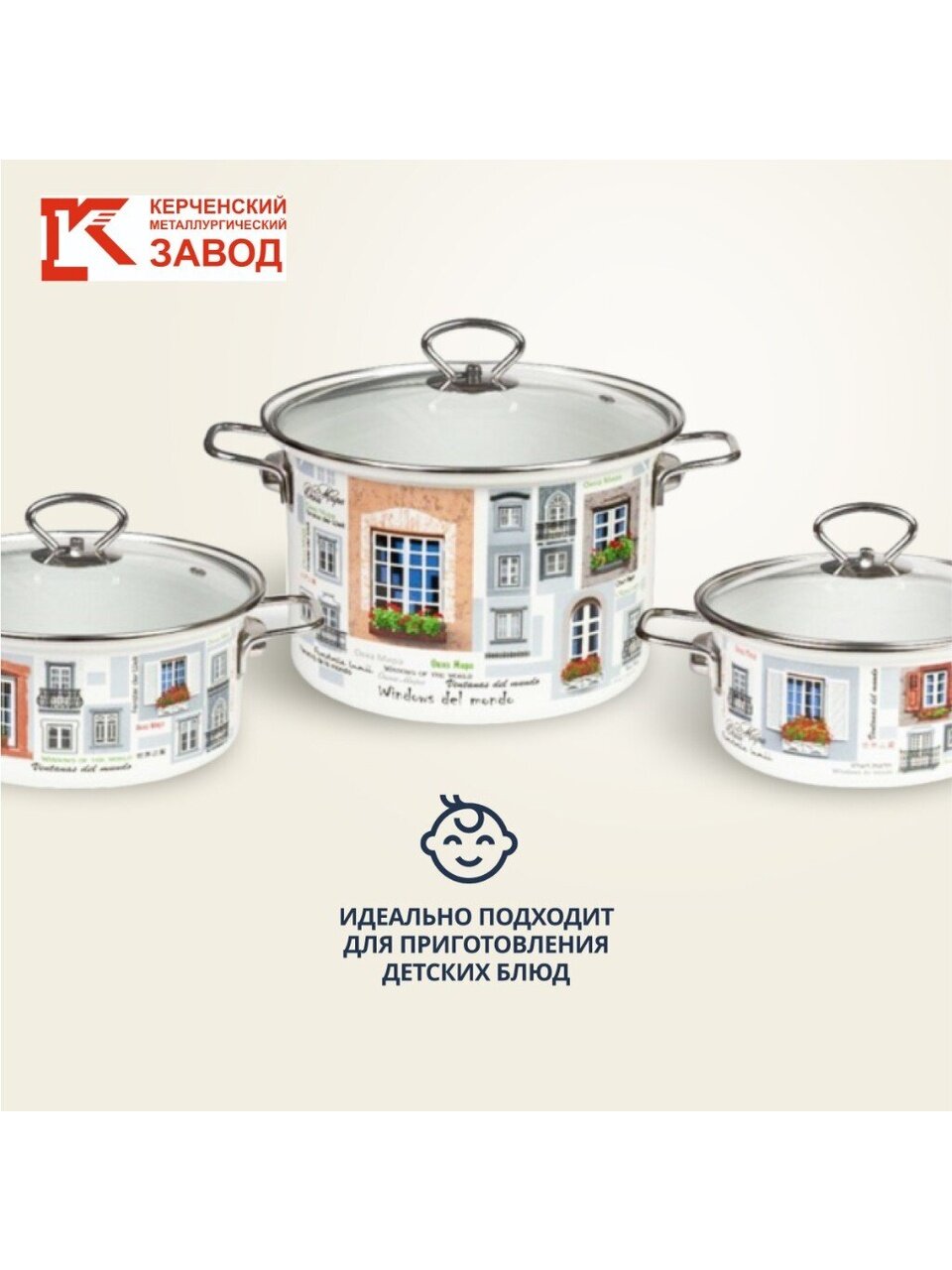 Набор кастрюль из эмалированной стали «Окна мира-5-1 Элит»: 6 предметов, объёмы 1.9/2.5/5 л, подходит для индукции и любых плит — долговечность и стиль для вашей кухни.