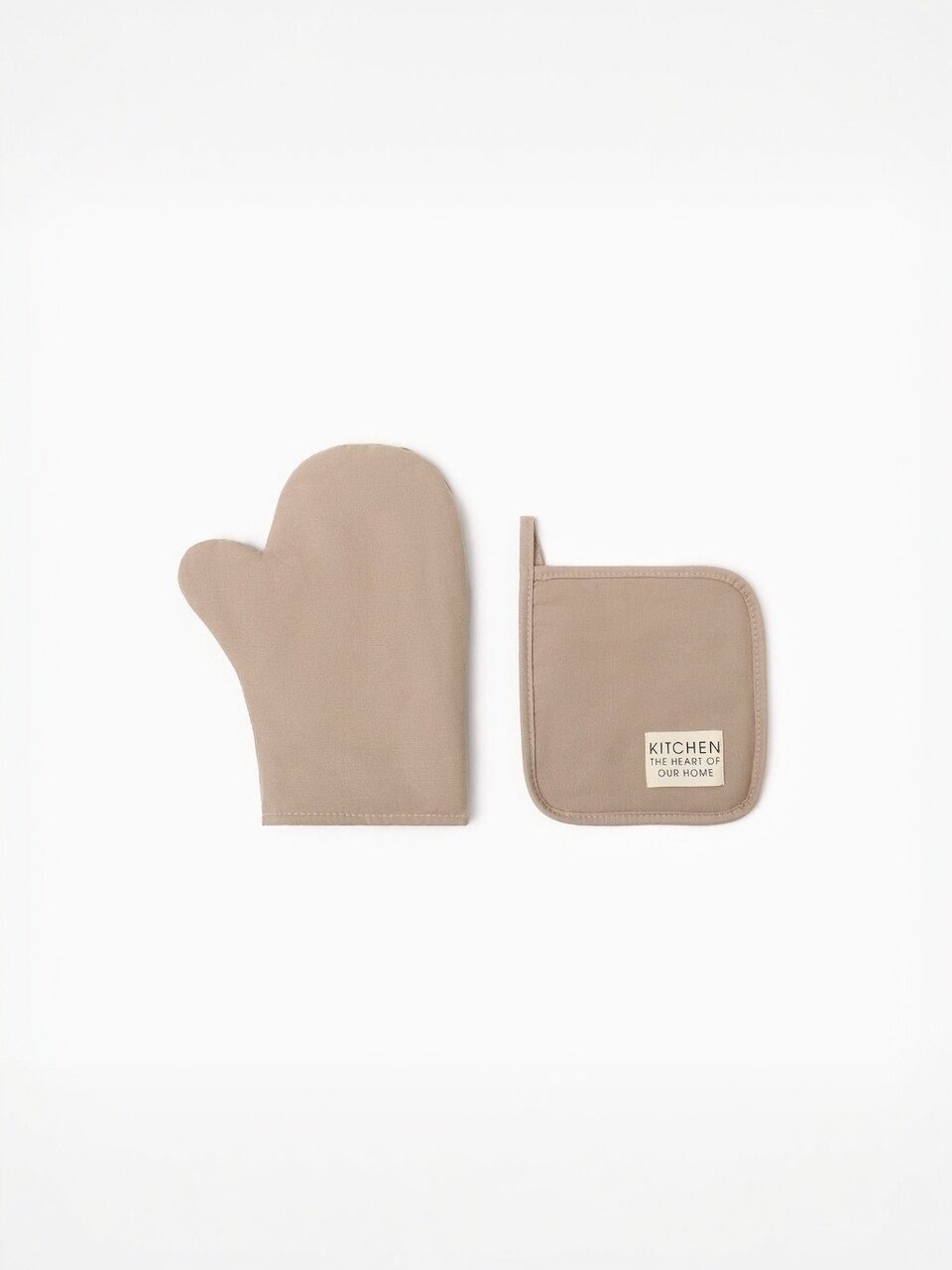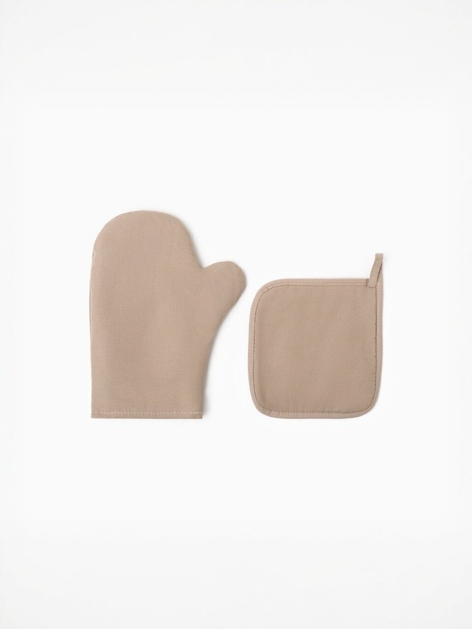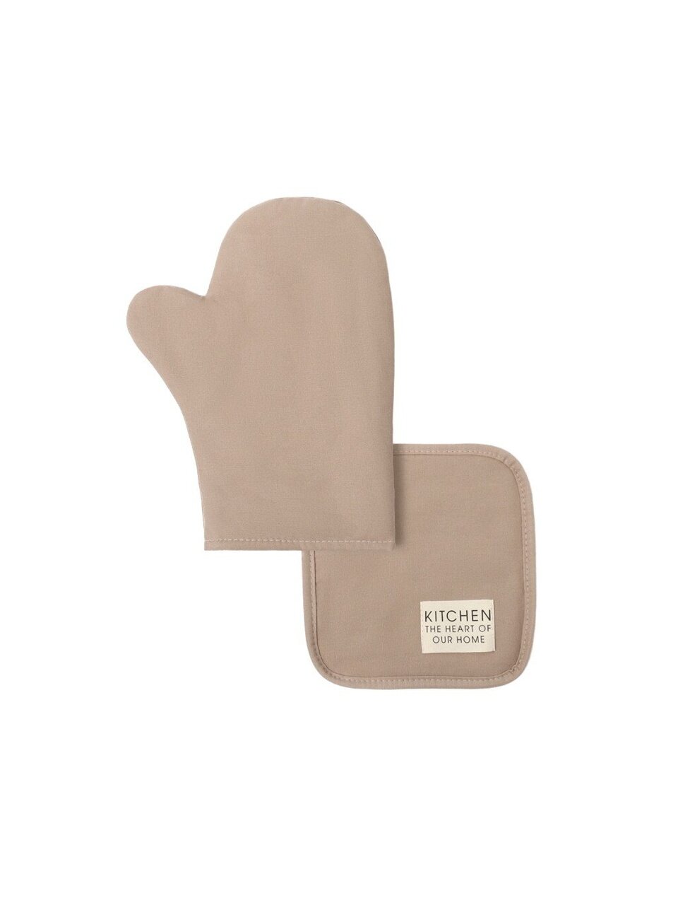 Кухонный набор включает две важные вещи: варежку размером 29х18 см и прихватку размером 19х19 см. Эти аксессуары помогут защитить руки от ожогов и упростят процесс работы с горячими блюдами. Бежевый цвет изделий гармонично впишется в любой интерьер, добавляя нотку элегантности и тепла.