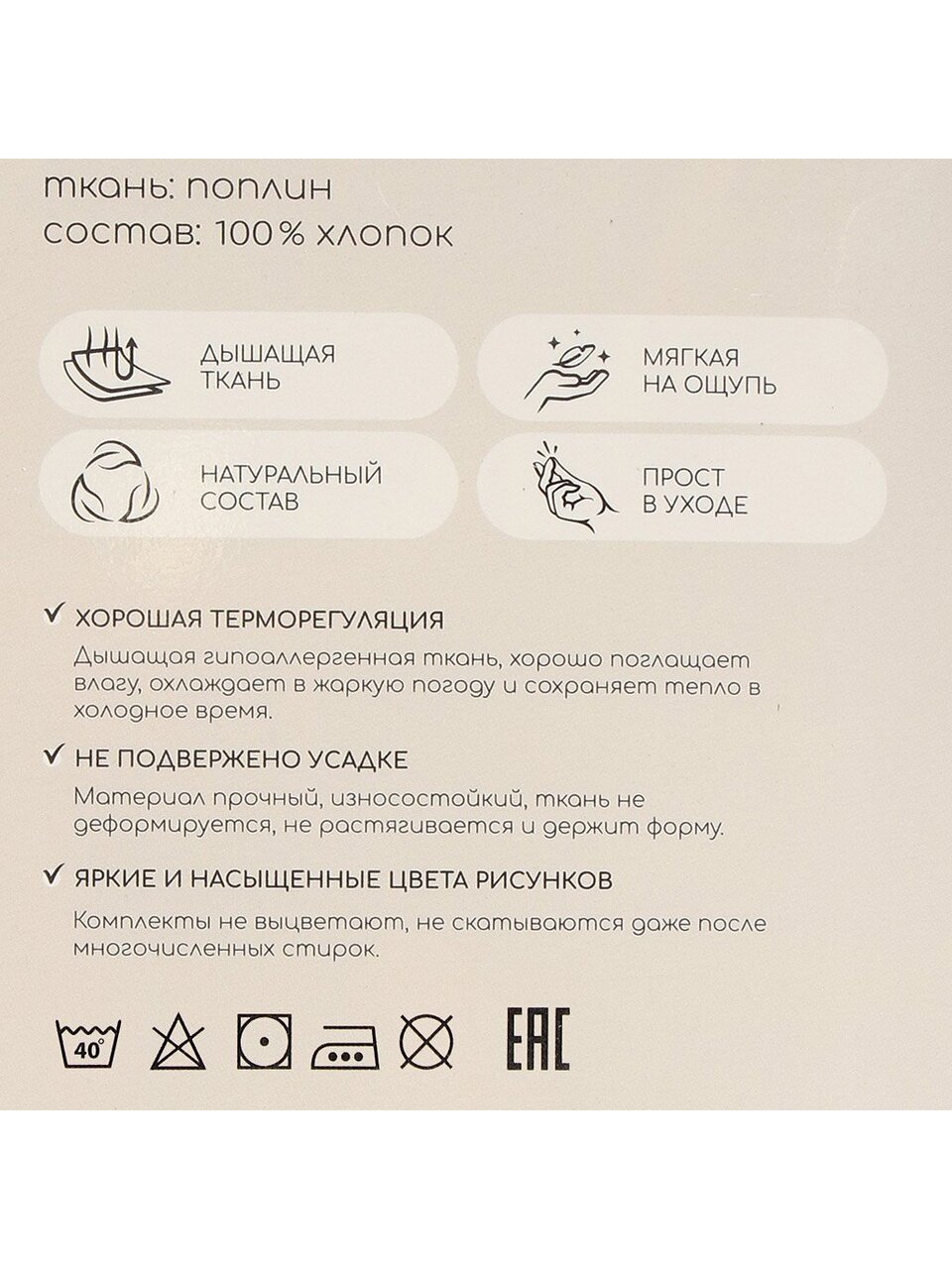 - Уникальный комфорт — дышащий поплин из 100% хлопка, не вызывает раздражения и сохраняет свежесть даже после многих стирок.