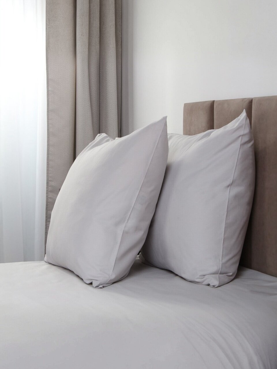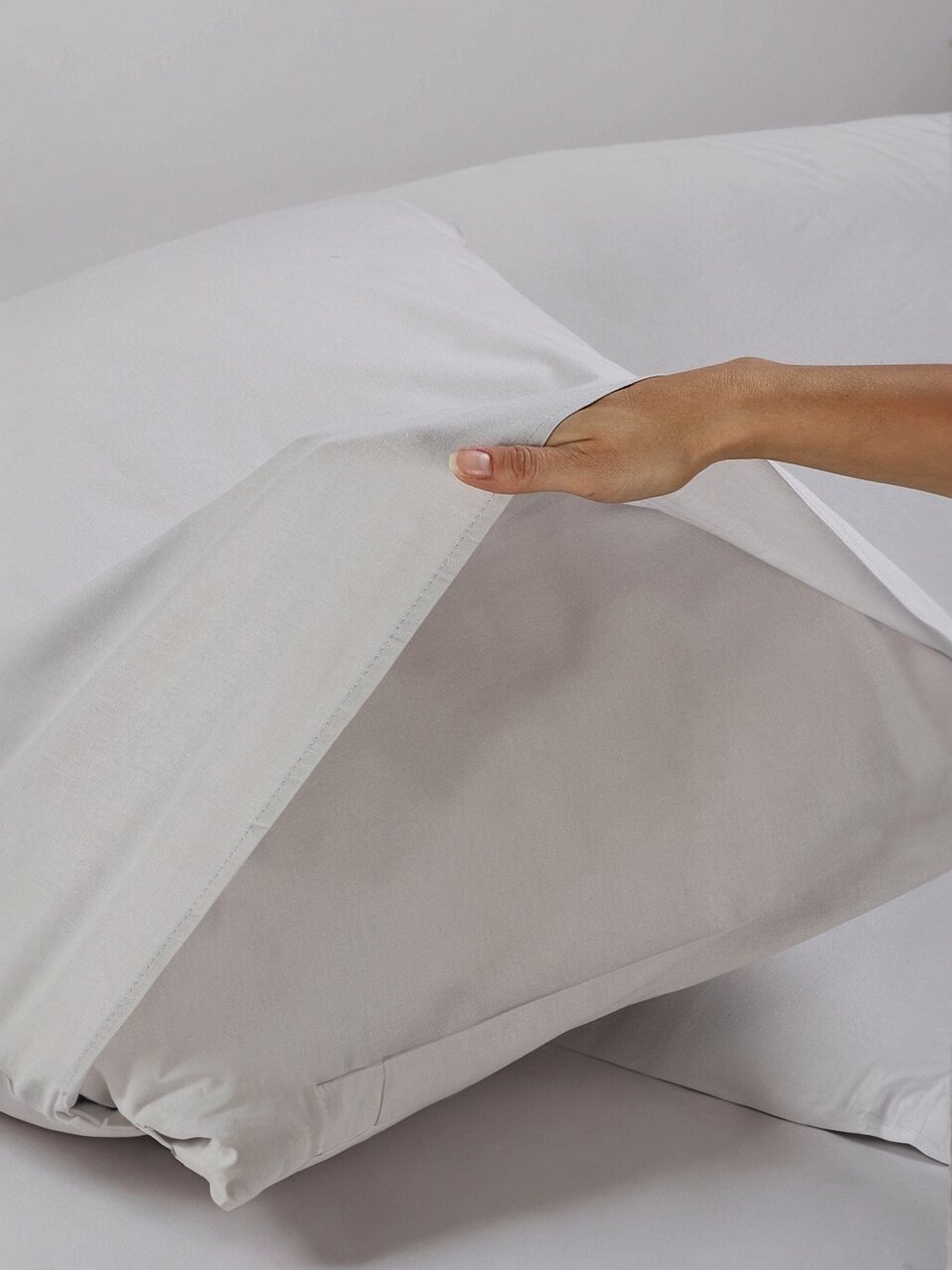 Наволочки выполнены из 100% хлопка (поплин) — это прочная, дышащая ткань, не вызывает аллергии, отличается долговечностью и простотой ухода.