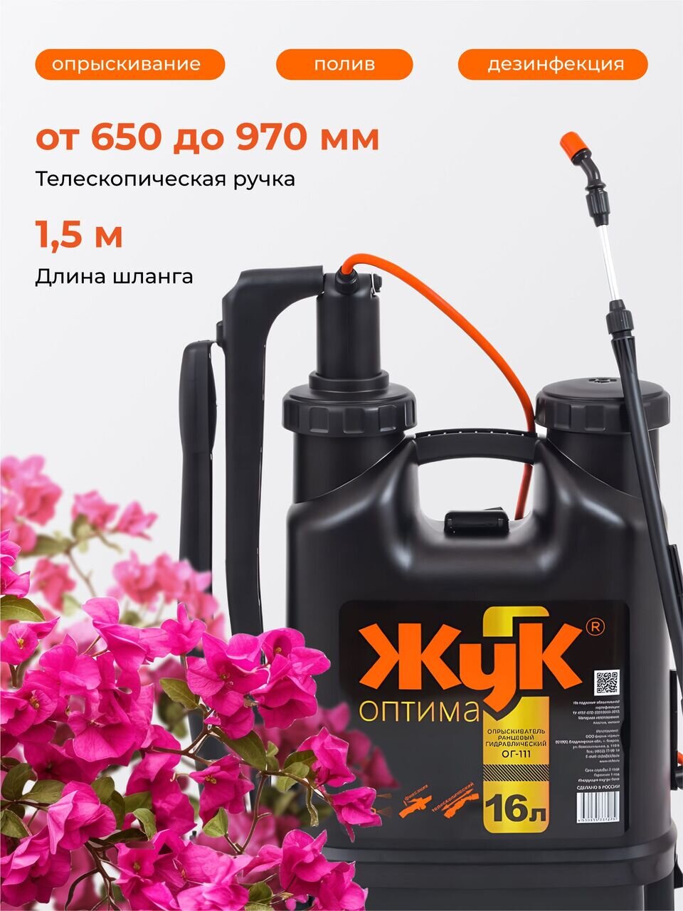 Вы можете приобрести «Опрыскиватель садовый Жук, 16 л, пластик, ранцевый, телескопическая штанга, 650-970 мм, Оптима, ОГ-111 7275-00» и другие товары в нашем интернет-магазине в Брянске по низким ценам и с бесплатным самовывозом.