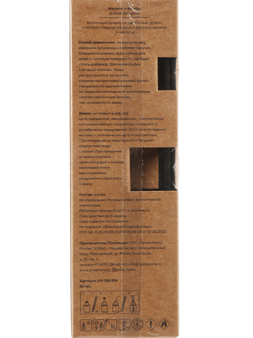 Аромадиффузор Arida Home «Малина и ваниль», 50 мл: стойкий аромат, нейтрализация запахов, выгодно для дома и подарка. Купите с доставкой!
