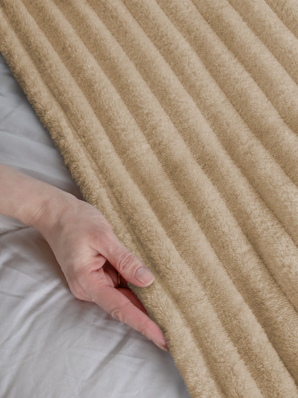 Рекомендуется ручная или деликатная стирка при 30°C без агрессивных средств. Плед быстро сохнет, сохраняет форму и цвет.