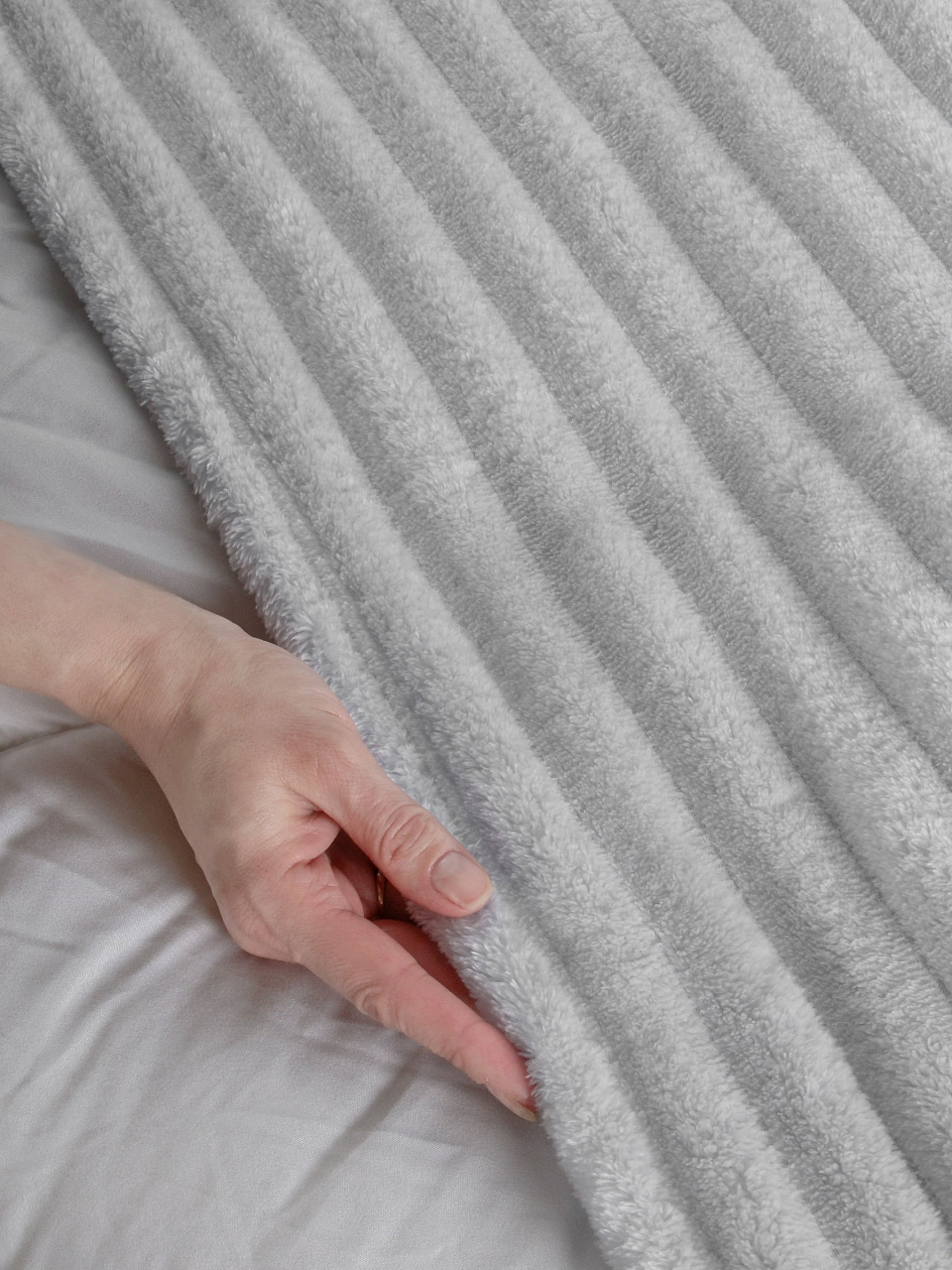 - Максимальный комфорт: плюшевый плед из микрофибры с коротким ворсом — приятный на ощупь, не вызывает раздражения кожи, сохраняет тепло даже в прохладном помещении.
