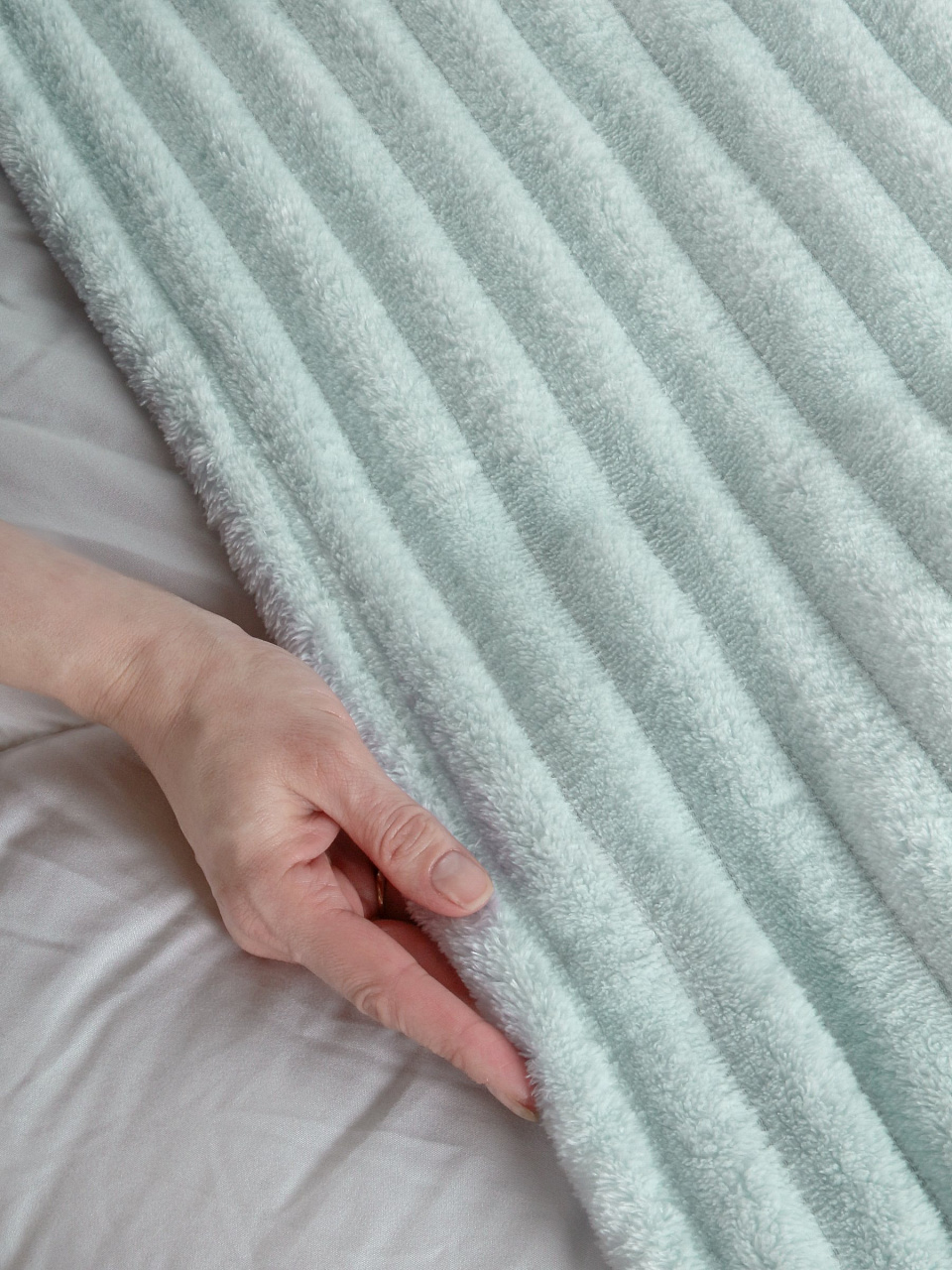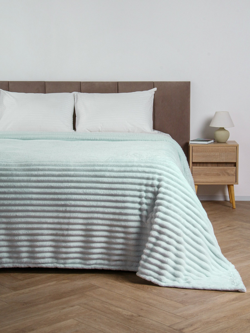 - Плюшевый плед с плотностью 280 г/м2 — сохраняет тепло и дарит ощущение уюта в любое время года.