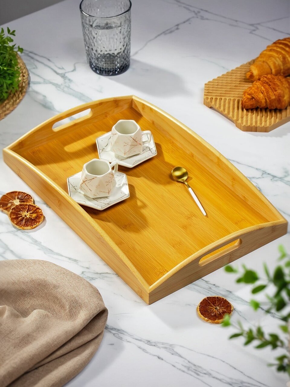 Бамбуковый поднос обладает высокой прочностью и долговечностью, что позволяет использовать его в течение длительного времени.