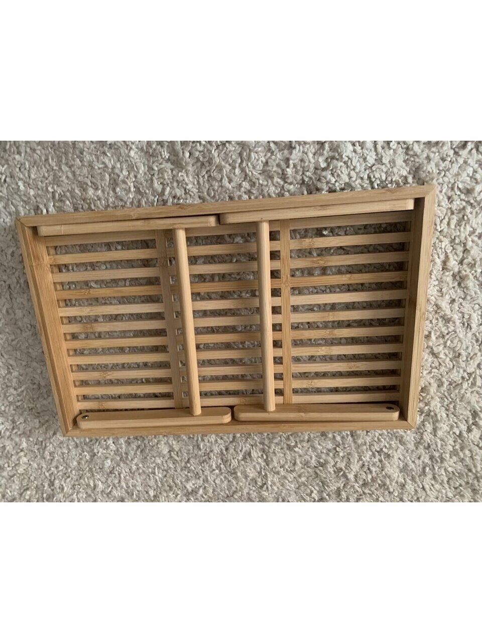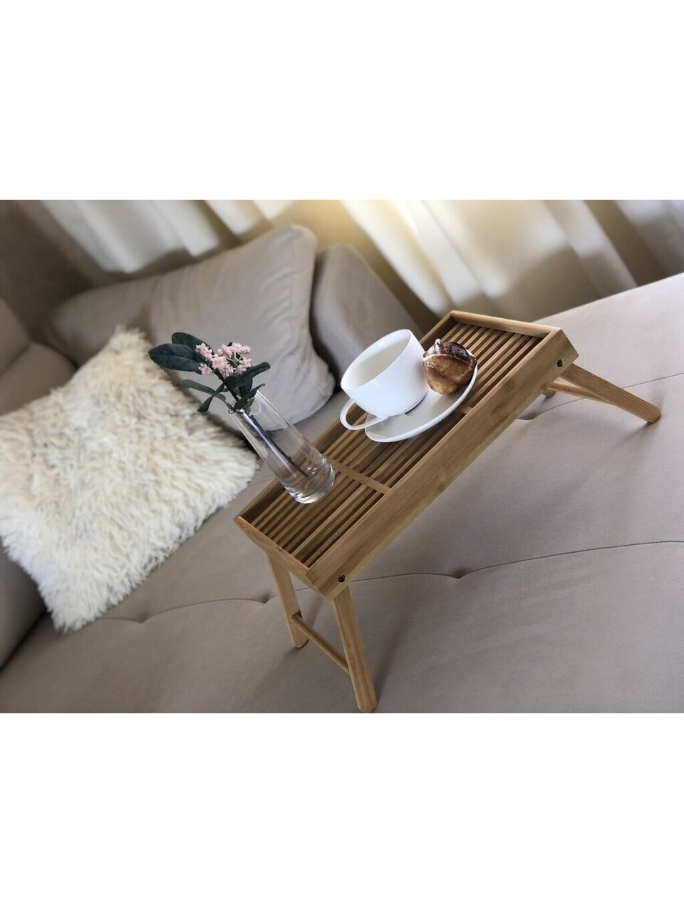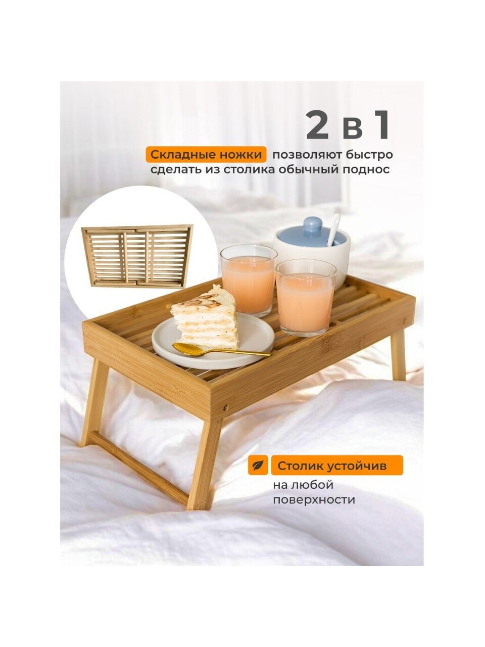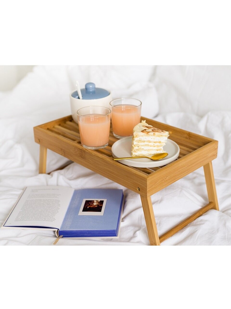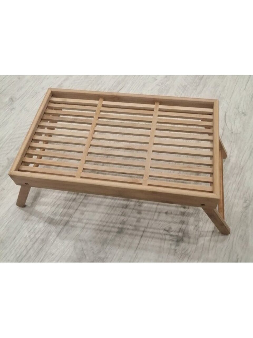 Столик для завтрака из бамбука G16-X074 является отличной альтернативой тяжелым металлическим или не очень надежным пластмассовым столам. Складные ножки позволяют быстро сделать из столика обычный поднос, а благодаря компактным габаритам в сложенном состоянии, он не займет много места и легко разместится даже на небольшой кухне.