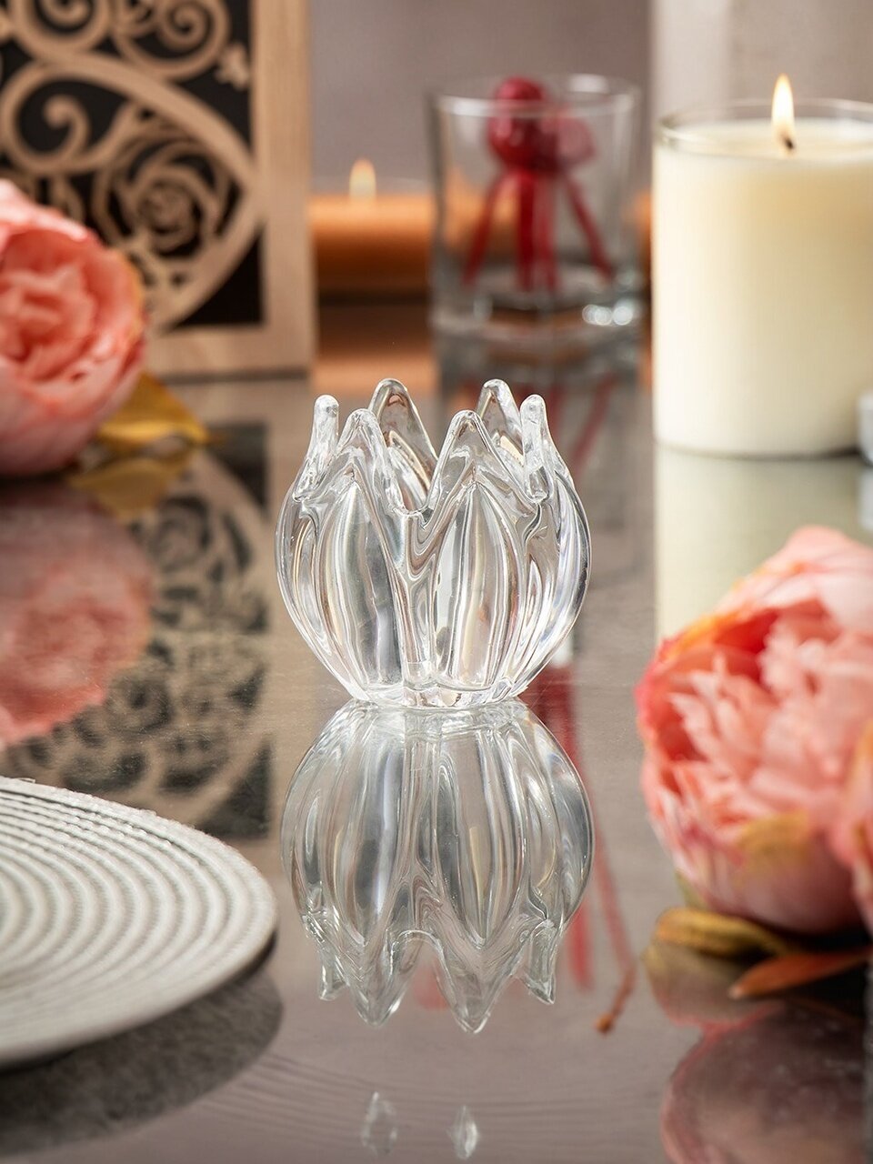 Подсвечник, выполненный из стекла, станет отличным украшением пространства.