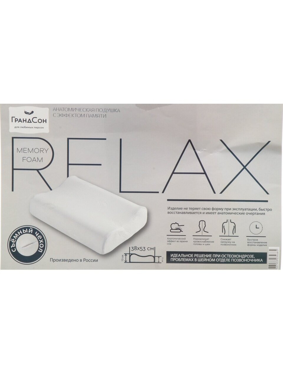Ортопедическая подушка Relax 38×53 с эффектом памяти: комфортный сон без боли в шее и спине, оптимальная поддержка, долговечный материал.