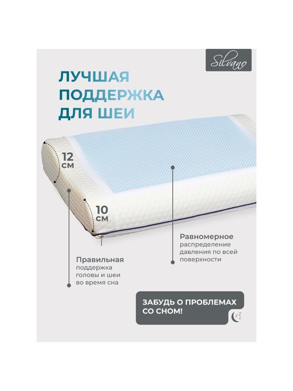 Ортопедическая подушка Silvano 40x60 с эффектом памяти: мягкая поддержка для здорового сна, гипоаллергенный чехол, оптимальная высота для комфорта шеи и спины.