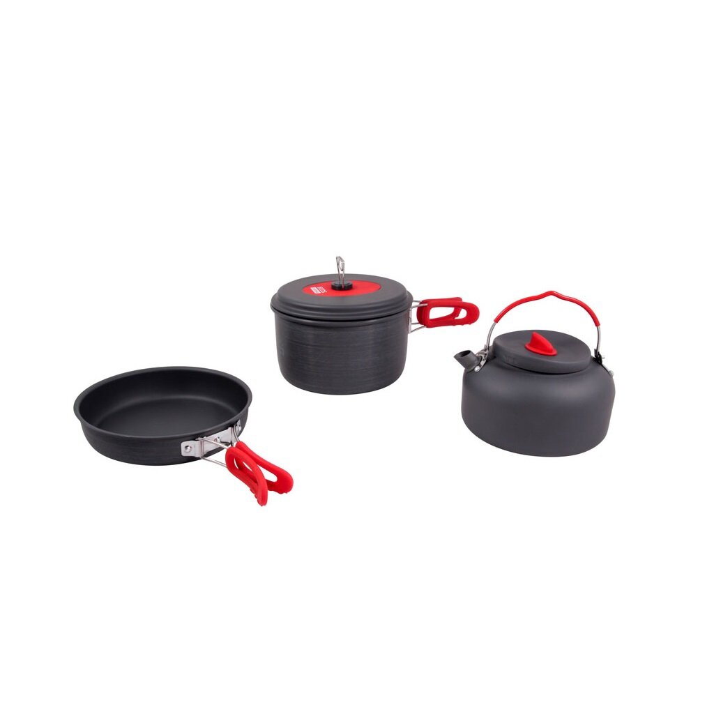 Набор кемпинговой посуды из пяти предметов: Котелок с крышкой, сотейник, чайник, тряпочка для ухода за посудой. Компактная упаковка "Пять-в-одном". Покрытие из анодированного алюминия защищает поверхность от коррозии и царапин, предотвращает окисление алюминия, не допуская его попадания в продукты и в организм человека.