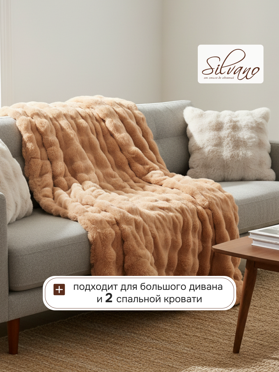 Покрывало не двухстороннее, но его однотонный какао-оттенок идеально впишется в современный интерьер. Часто спрашивают, подходит ли такое покрывало для дачи или как использовать его в качестве подарка — благодаря универсальному дизайну и большому размеру оно станет отличным решением для любого сценария: от уютных вечеров дома до стильного оформления гостевой комнаты. В отличие от аналогов с меньшей плотностью, Silvano Кролик дольше сохраняет форму и не теряет мягкости даже после многочисленных стирок.