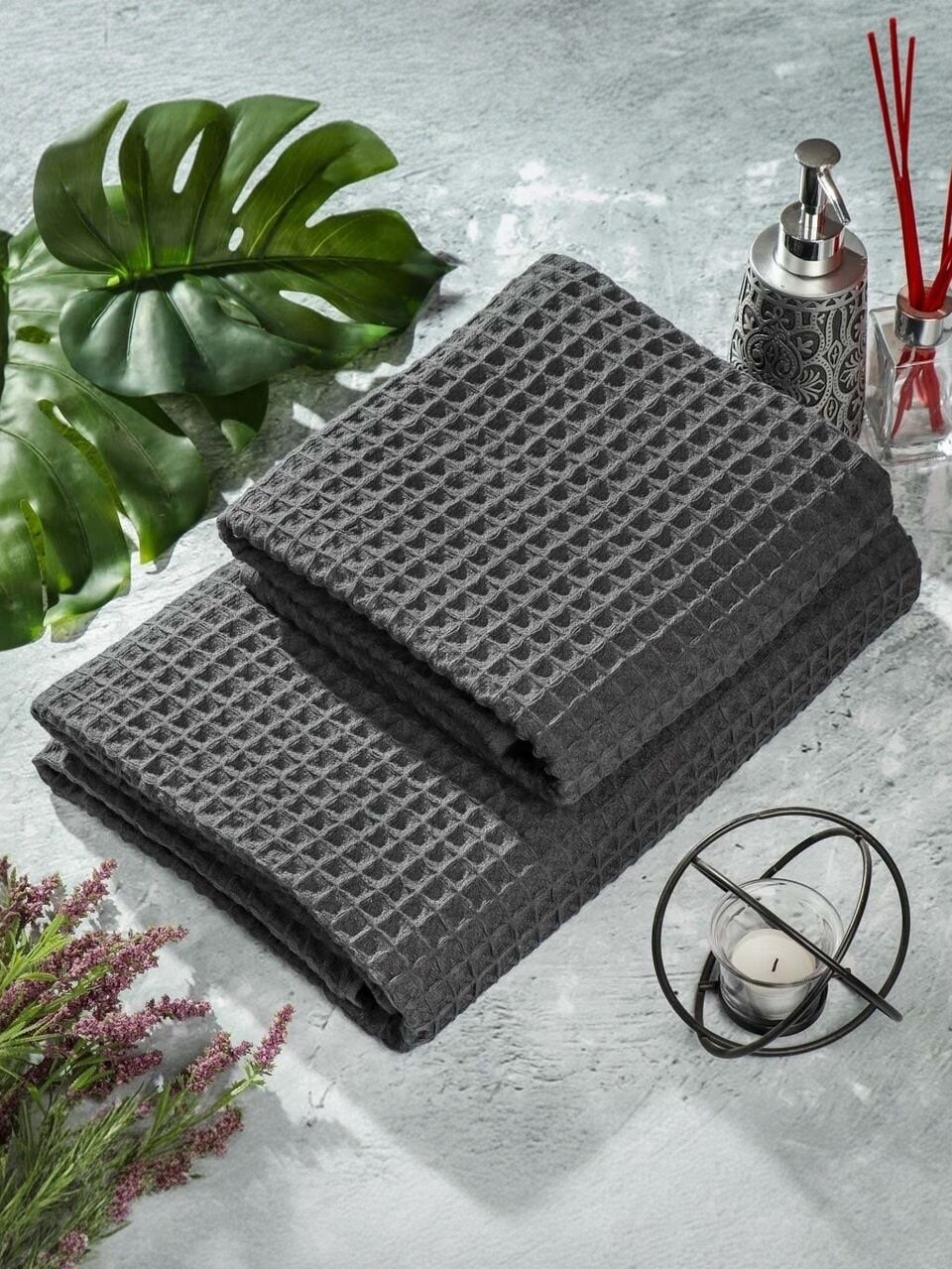 - Вафельная фактура — быстро впитывает влагу и легко сохнет, не теряя мягкости после стирок