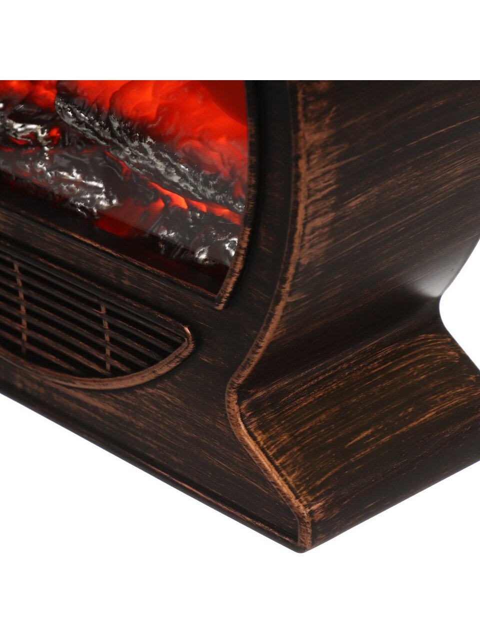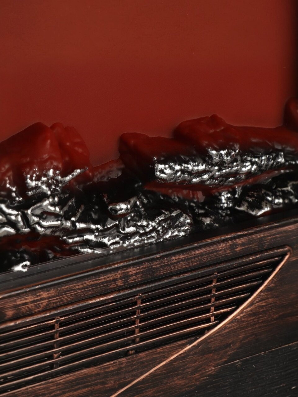 Композиция из медленно “тлеющих” поленьев освещается экономичными и безопасными светодиодами, имитирующими настоящее пламя. Благодаря этому декоративный камин не нагревается и не выделяет дым.