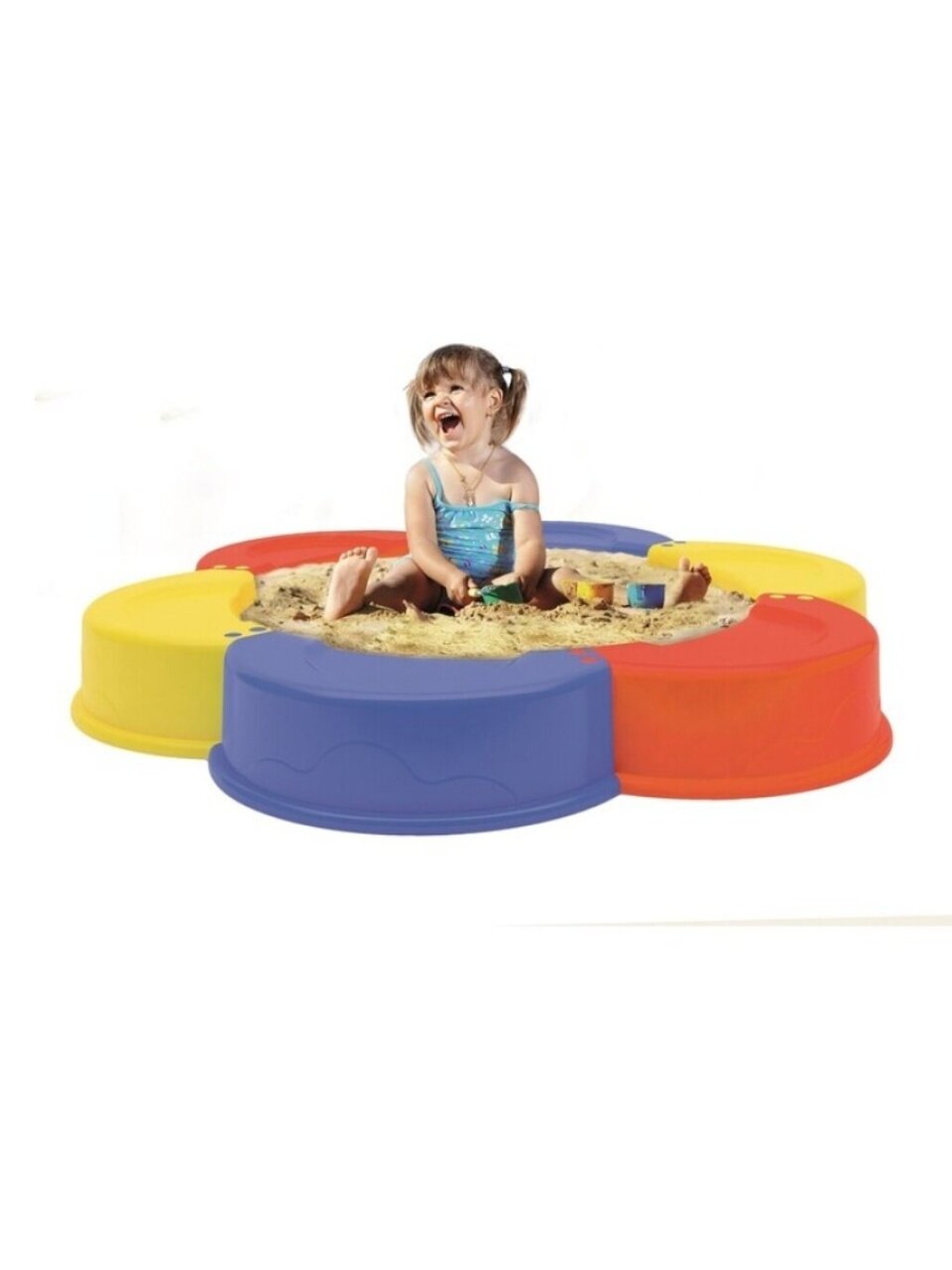 - Привлекательный дизайн — модули яркие, упакованы в короб с этикеткой. В сборе песочница похожа на цветок. Красивый и полезный подарок;
