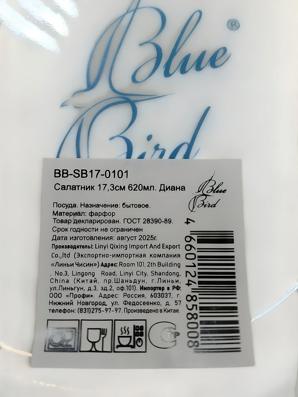 Вы можете приобрести «Салатник фарфор, круглый, 17.3 см, 0.62 л, Диана, Blue bird, BB-SB17-0101» и другие товары в нашем интернет-магазине в Ярославле по низким ценам и с бесплатным самовывозом.