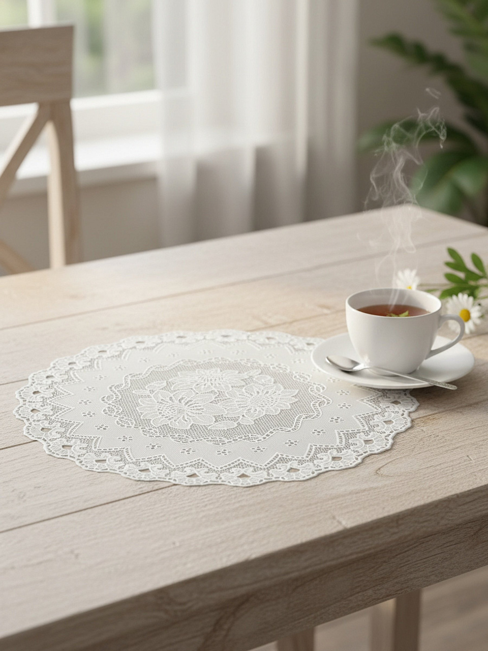 Салфетка для стола из ПВХ Grace Лейс, круглая, белая, размером 30х30 см – это современное решение для защиты столешницы от влаги, пятен и царапин. Благодаря плотному ПВХ материалу, изделие легко моется, не впитывает запахи и выдерживает многократное использование, что особенно важно для семей с детьми и активной эксплуатации на даче.