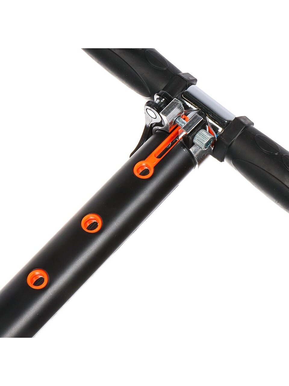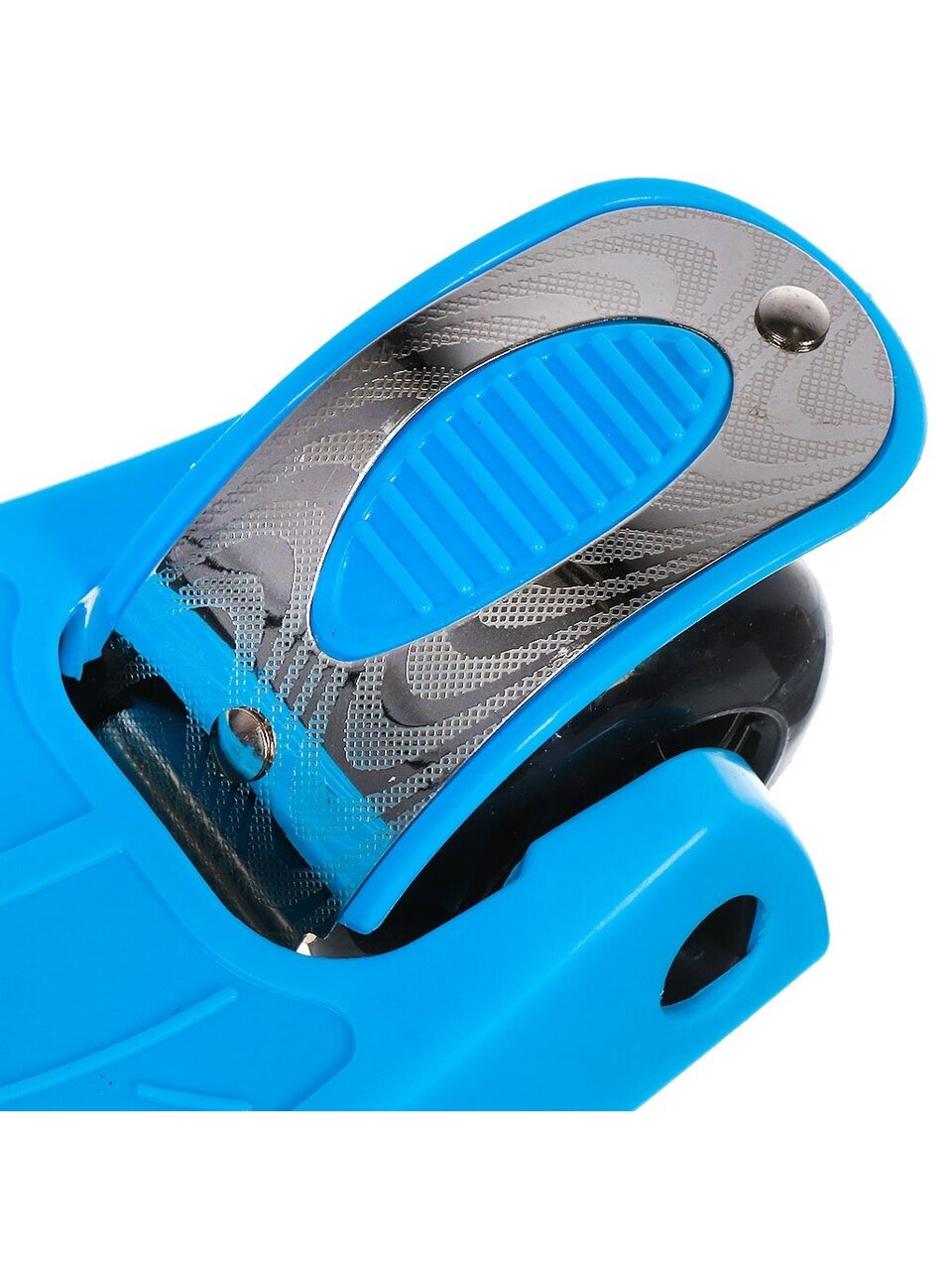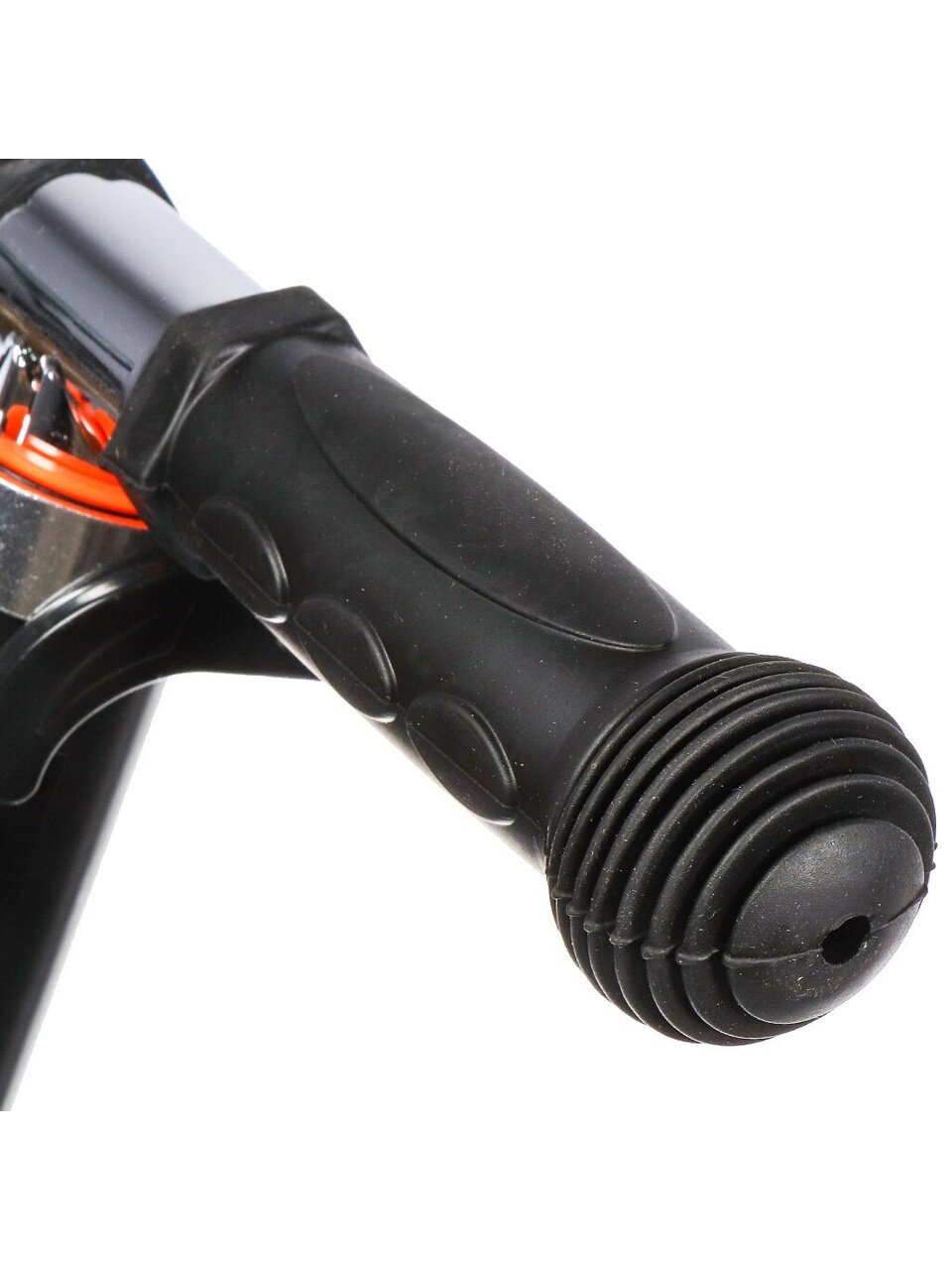 Удобные грипсы на руле предотвращают соскальзывание рук. Остановка легко осуществляется с помощью ножного тормоза. Самокат имеет складную конструкцию, которая не занимает много места при хранении.