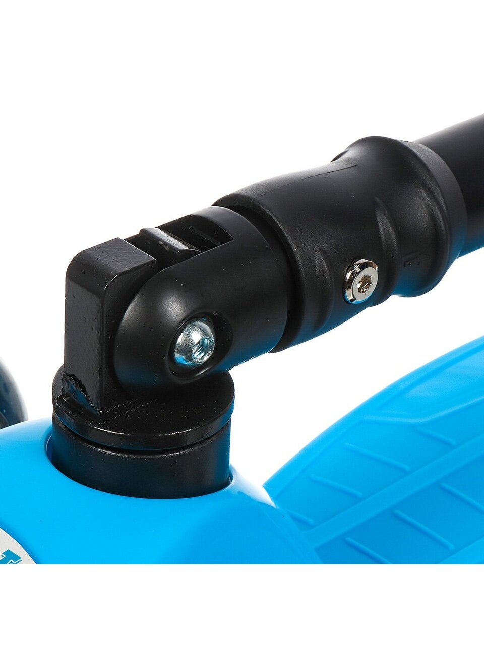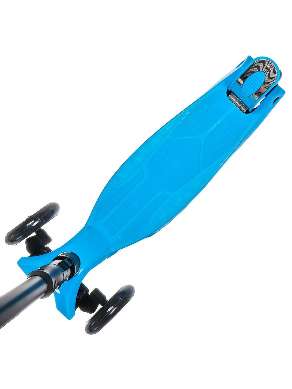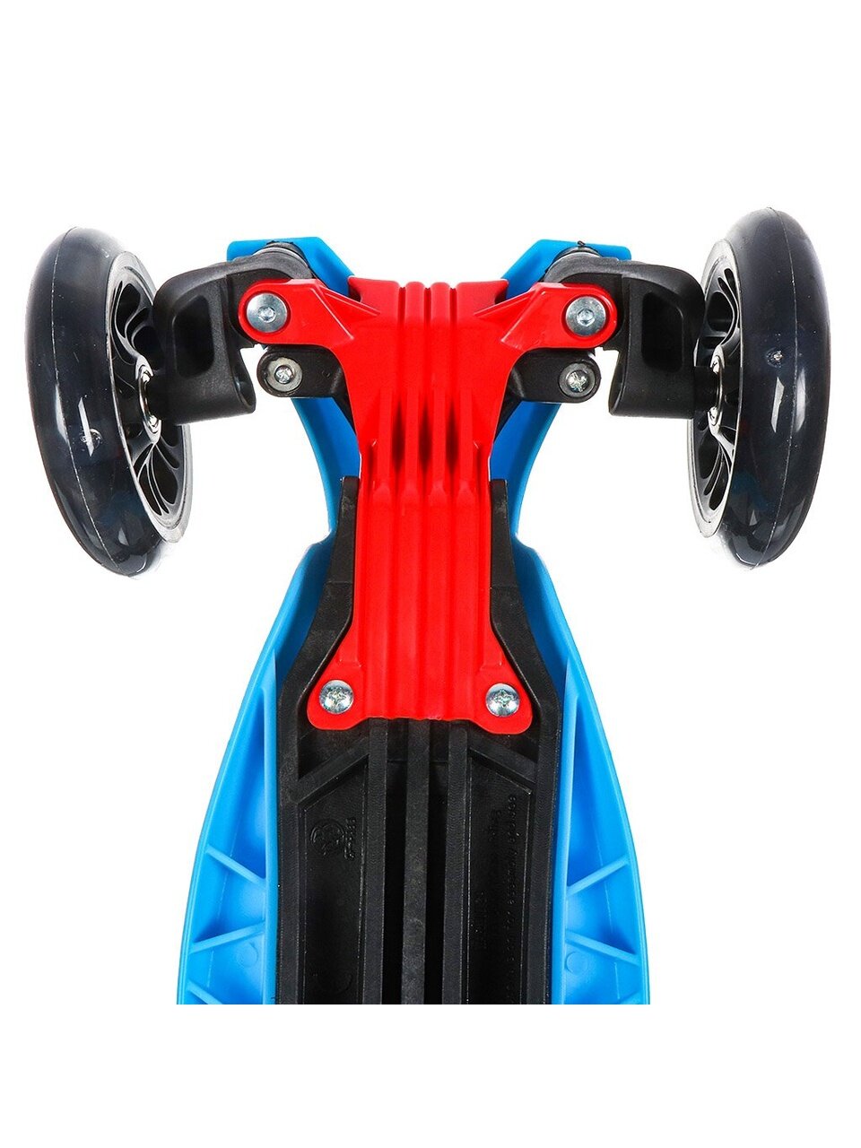 Удобные грипсы на руле предотвращают соскальзывание рук. Остановка легко осуществляется с помощью ножного тормоза. Самокат имеет складную конструкцию, которая не занимает много места при хранении.
