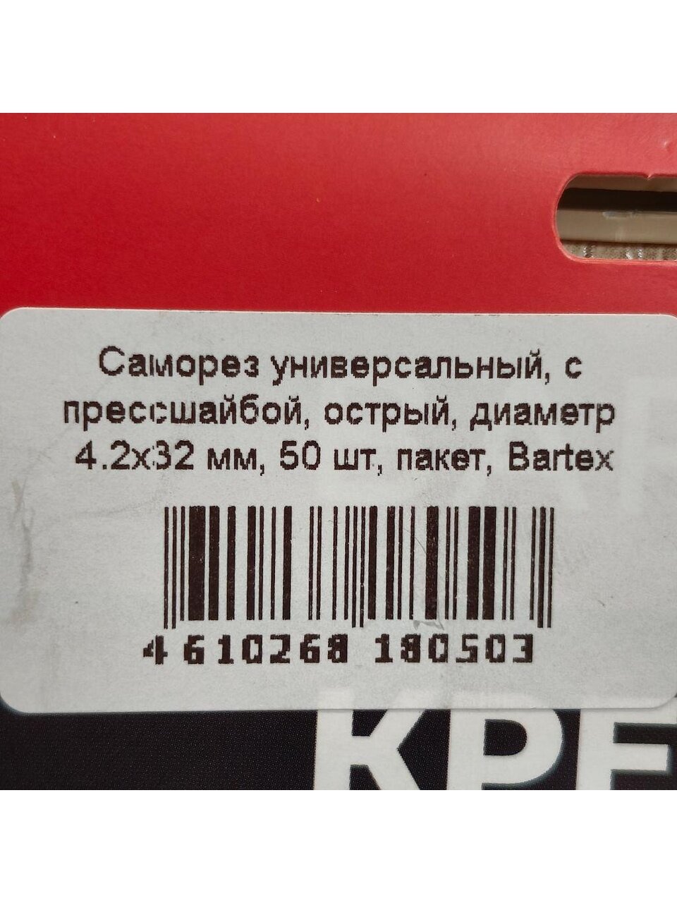 Вы можете приобрести «Саморез универсальный, с прессшайбой, острый, диаметр 4.2х32 мм, 50 шт, пакет, Bartex» и другие товары в нашем интернет-магазине в Таганроге по низким ценам и с бесплатным самовывозом.