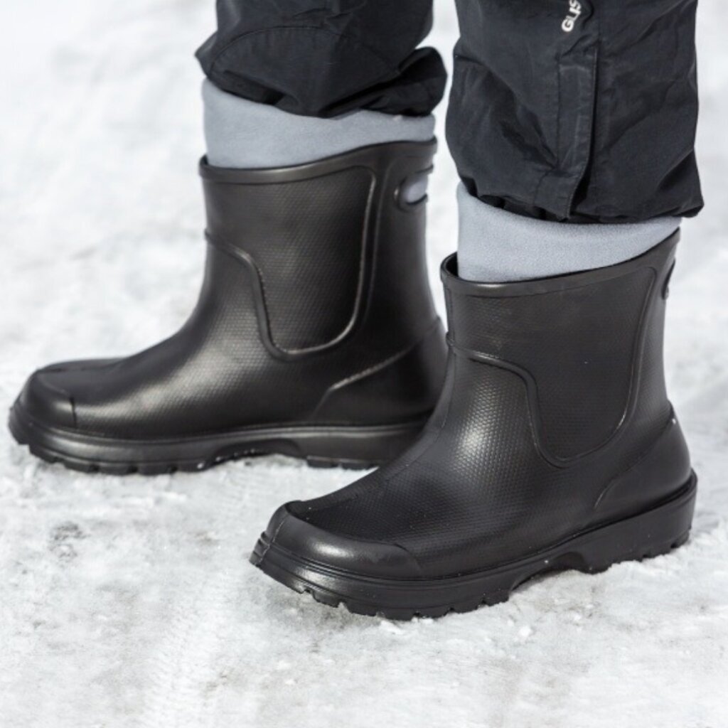 Ботинки сделаны из непромокаемого материала ЭВА, который отлично держит температуру стопы и не пропускает холод внутрь изделия, а также обладают чрезвычайной легкостью. Структура материала надежно оберегает от попадания влаги внутрь сапога, а стенки изделия не деформируются и не промокают даже при долгом нахождении в воде.