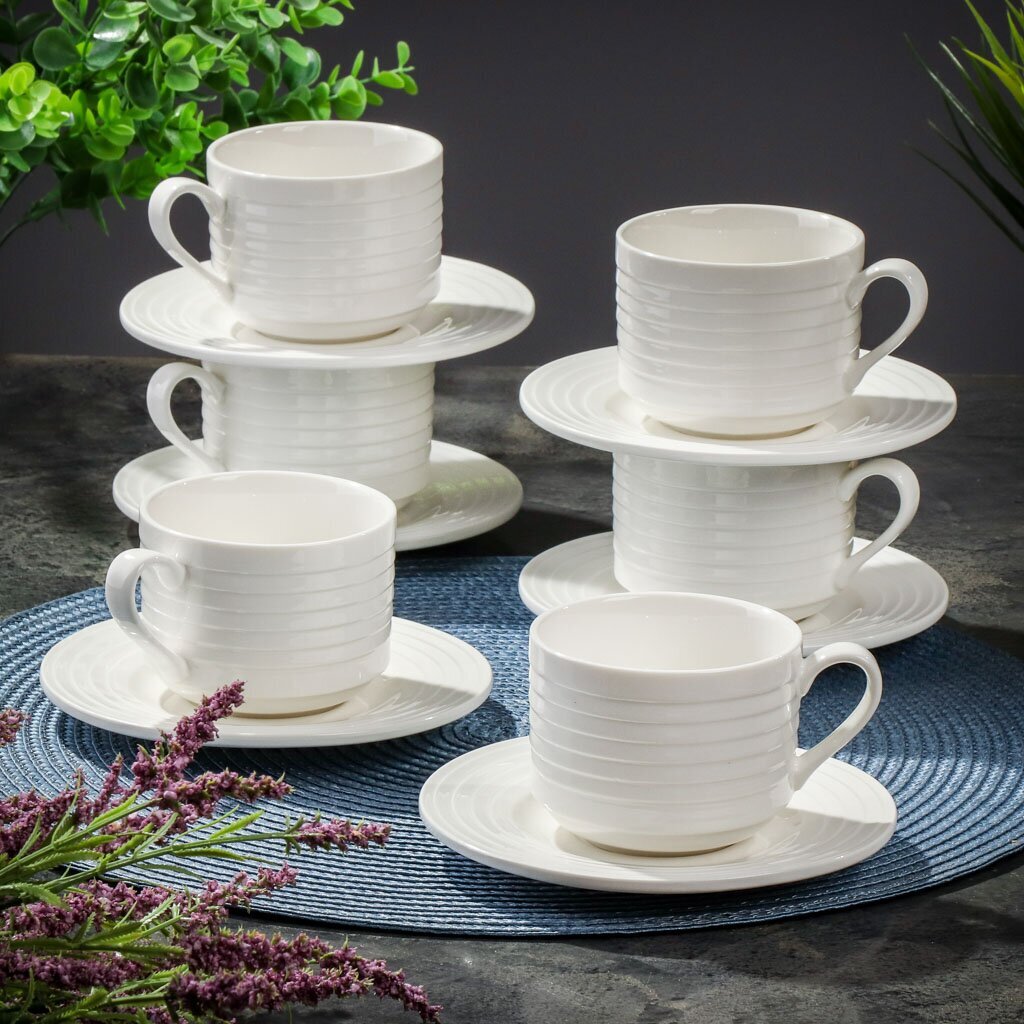 Чайный сервиз порадует хозяев и их гостей своим элегантным исполнением. Он отличается легкостью и совершенством форм. Белая высококачественная керамика придает изделию воздушности и подчеркивает изысканный вкус владельца.