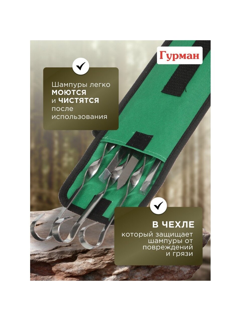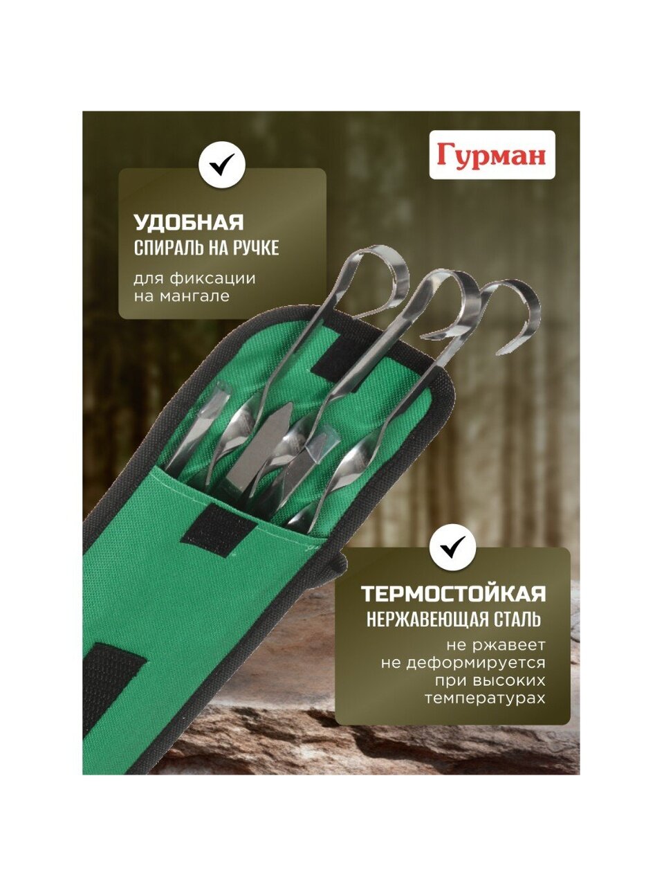 Шампур изготовлен из нержавеющей стали (марка 2CR13) толщиной 1,5 мм.