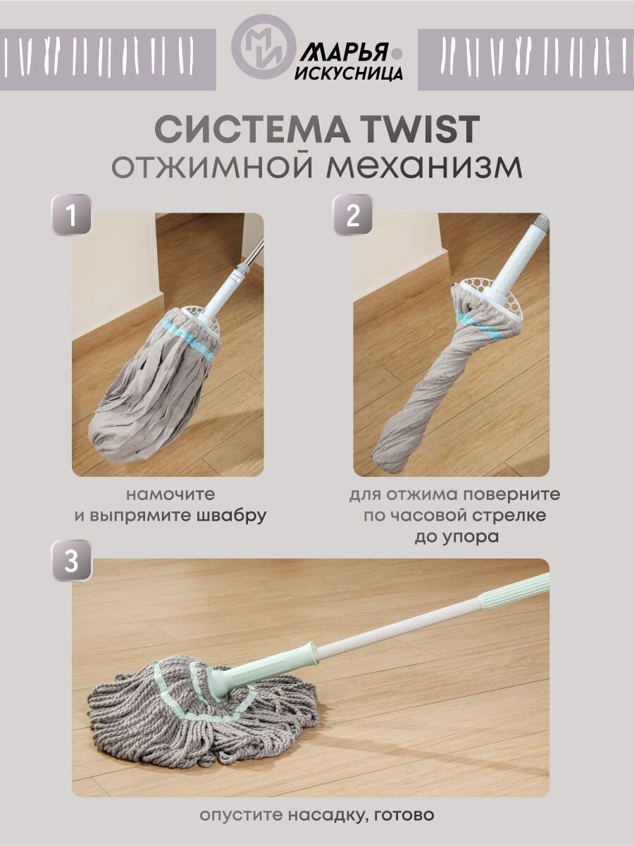 В отличие от моделей с поролоновым или губчатым основанием, веревочная швабра не требует частой замены насадки и лучше справляется с застарелыми пятнами. Отжим осуществляется вручную, что исключает разбрызгивание воды. Как использовать швабру с микрофиброй? Просто смочите насадку, отожмите и приступайте к уборке — поверхность быстро становится чистой без лишних усилий. Подходит ли для аллергиков? Да, микрофибра не поднимает пыль в воздух и облегчает уборку в доме с детьми и животными.