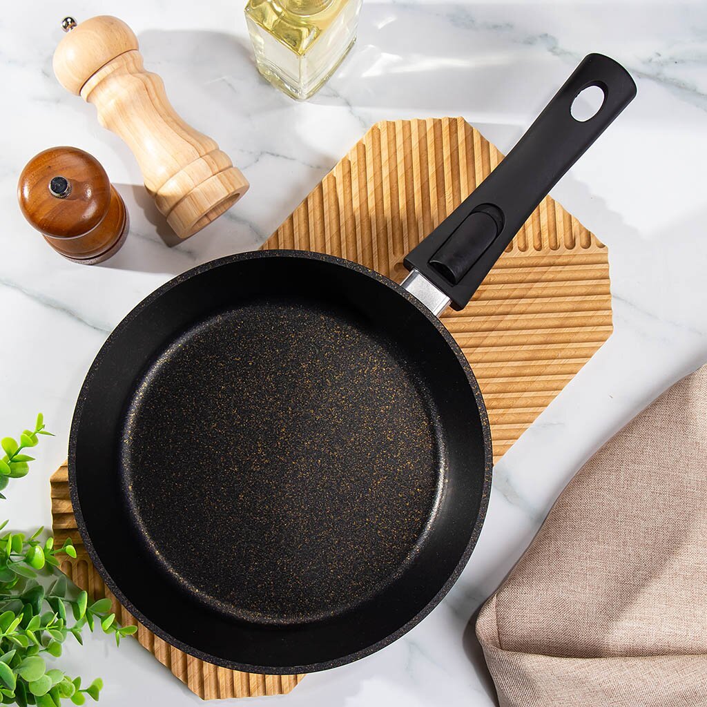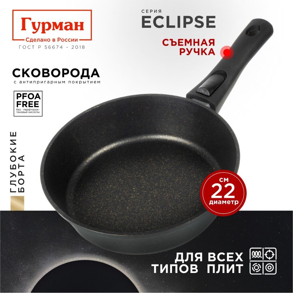 Сковорода литая алюминиевая 22 см Гурман Eclipse: гранитное антипригарное покрытие, съемная ручка, подходит для индукции — удобно, долговечно, выгодно.
