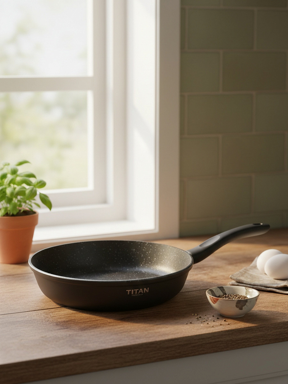Многие спрашивают: чем отличается литая алюминиевая сковорода от штампованной? Литая модель прочнее, дольше держит тепло и не деформируется со временем. Подходит ли такая сковорода для индукции? Да, благодаря специальному ферромагнитному дну она совместима с любыми плитами. Если вы выбираете сковороду для дачи или подарка — универсальный размер и современный дизайн делают Titan Space отличным решением.