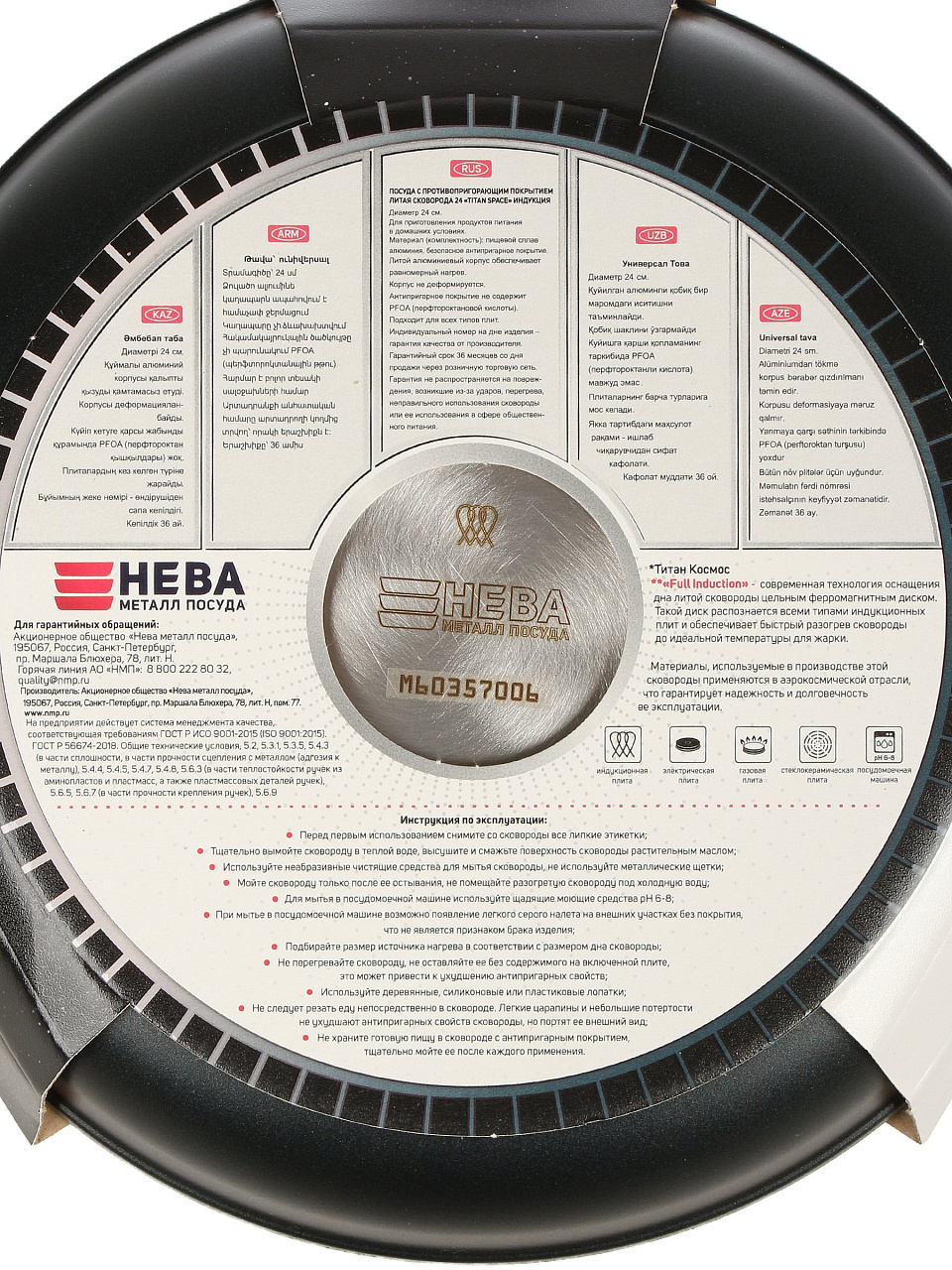 Вы можете приобрести «Сковорода литой алюминий, 24 см, антипригарное покрытие, Нева Металл Посуда, Titan Space, индукция, 918124i» и другие товары в нашем интернет-магазине в Твери по низким ценам и с бесплатным самовывозом.