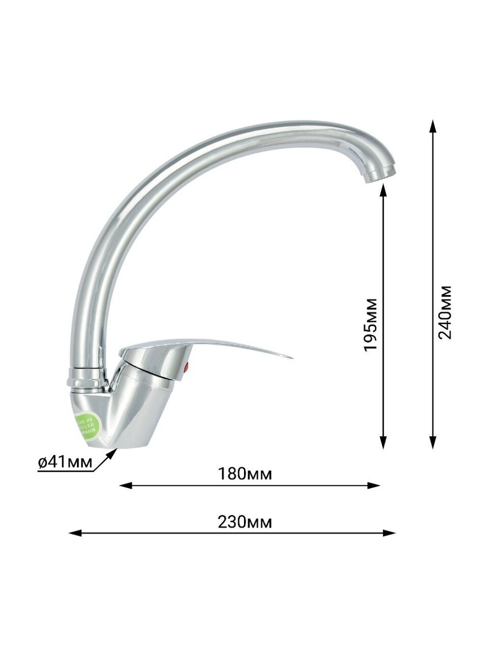 - Универсален: подходит для городской кухни, дачи и в подарок — простая установка в 1 отверстие, гибкая подводка, эргономичный однорычажный механизм.