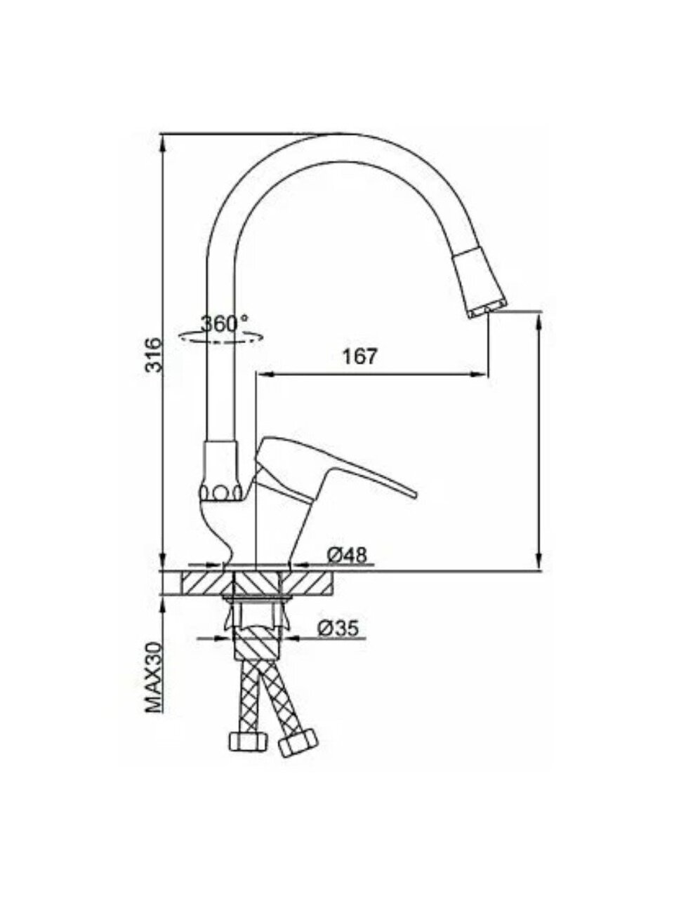 Гибкий излив длиной 16,7 см позволяет легко направлять струю, мыть крупную посуду, наполнять вазы и кастрюли, повышая комфорт и экономя время.
