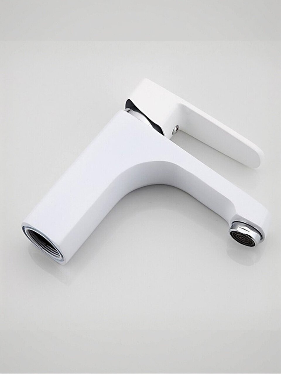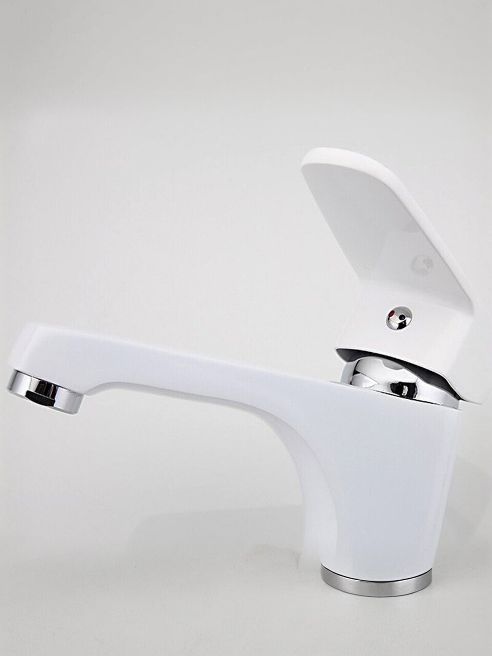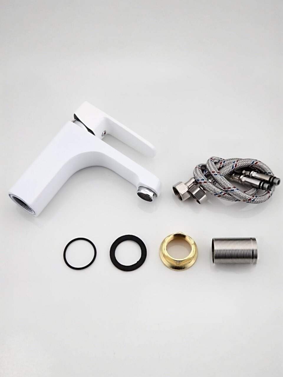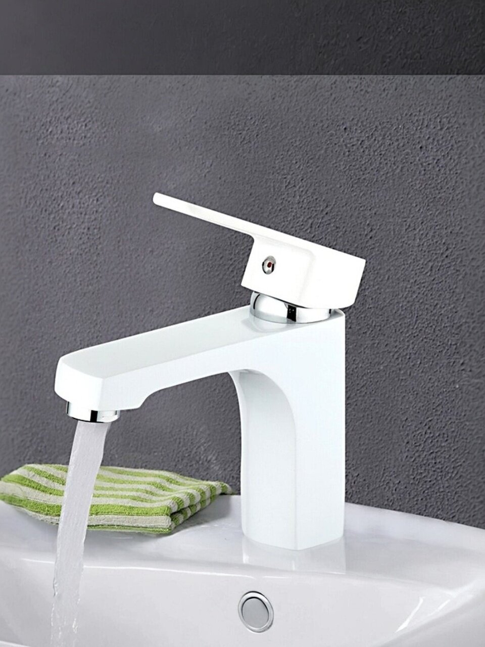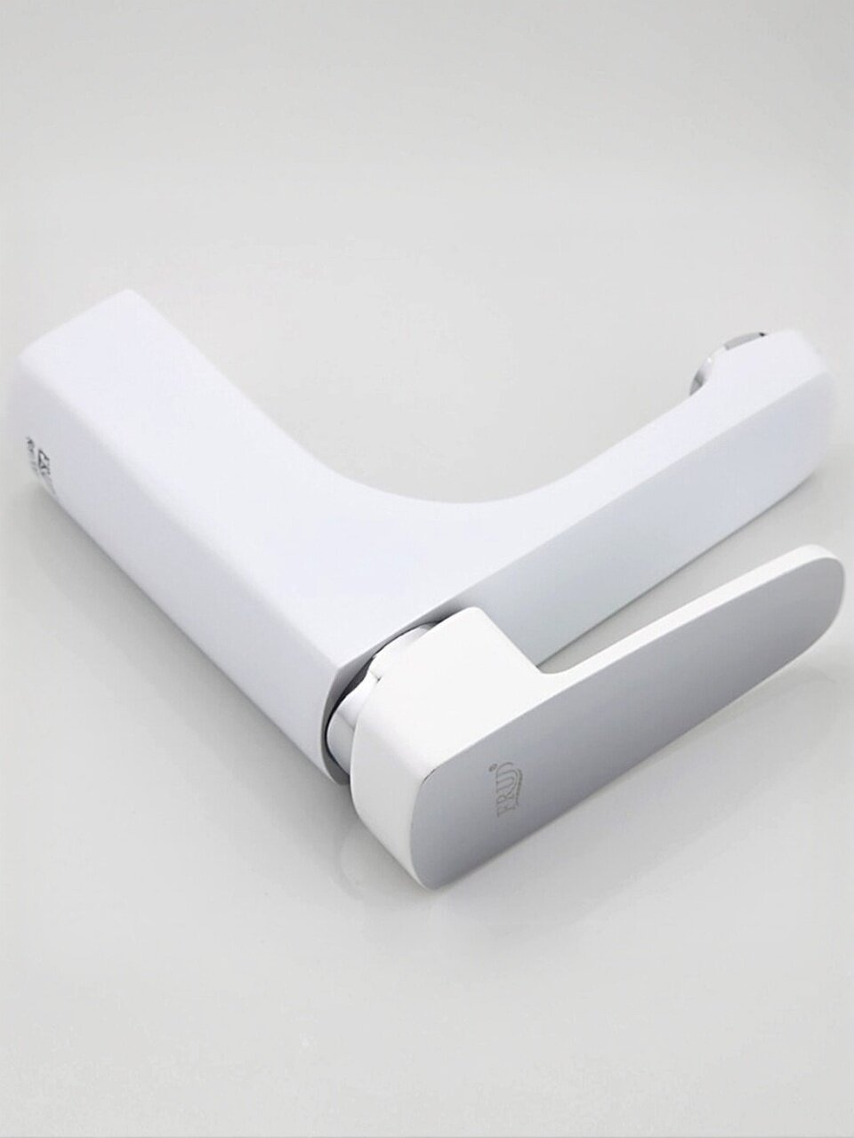 Смеситель для раковины Frud R10301-2: стильный короткий излив, керамический картридж, белый матовый корпус — решение для компактных ванных и быстрой замены.