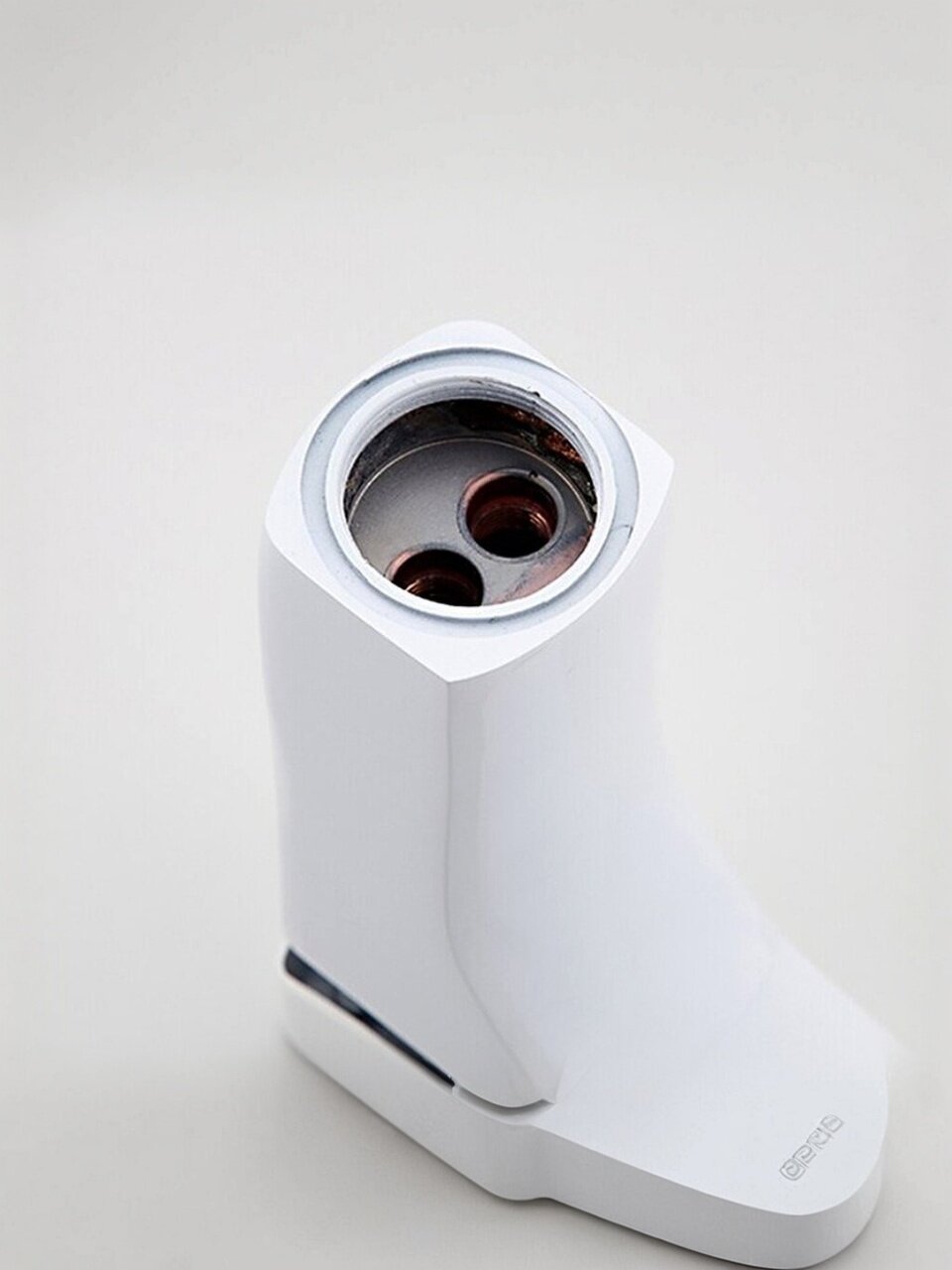 Корпус выполнен из силумина — прочного сплава, устойчивого к коррозии и механическим повреждениям, с матовым белым покрытием.