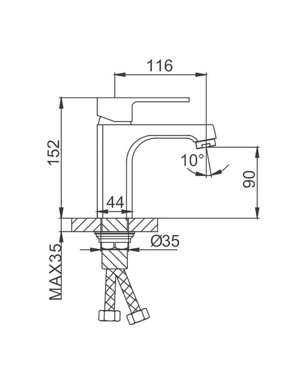 Да, благодаря короткому изливу (11,6 см) и компактной форме, модель отлично подходит для небольших раковин и ограниченного пространства.
