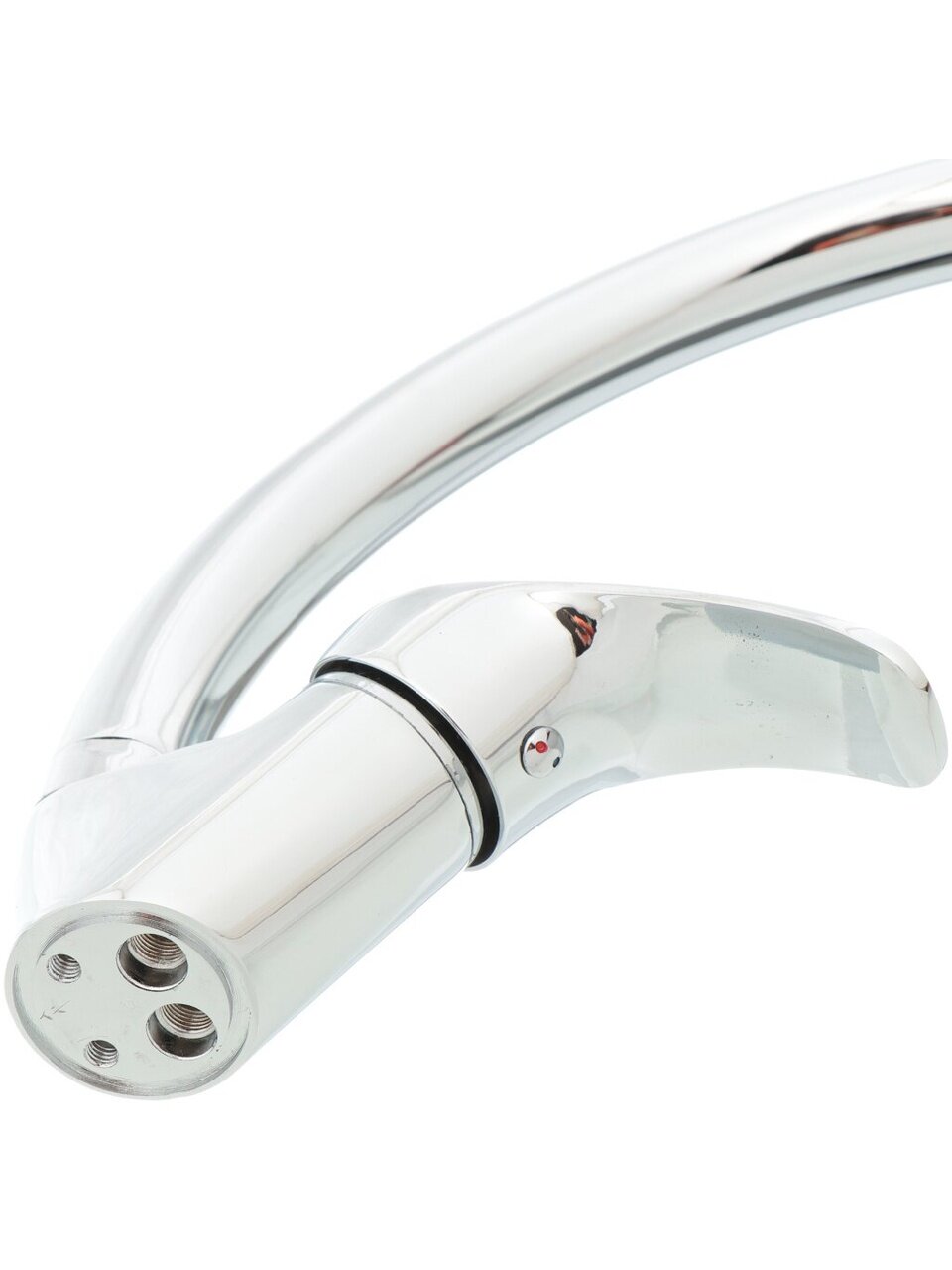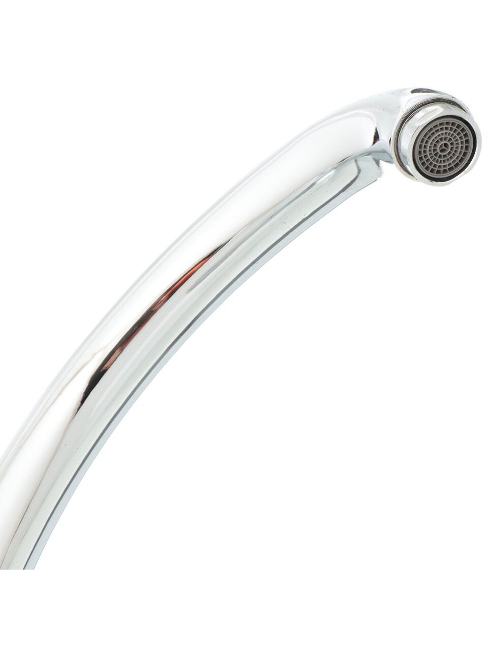 В отличие от моделей с коротким изливом и пластиковым корпусом, этот смеситель выполнен из прочного силумина, что исключает протечки и быстрое изнашивание. Глянцевая хромированная поверхность устойчива к появлению пятен и царапин. Вопросы вроде «подходит ли смеситель для фильтрации воды» или «можно ли установить на одну мойку» — да, конструкция рассчитана на стандартное монтажное отверстие 43 мм и гибкую подводку 1/2", но переключателя на фильтр в комплекте нет.