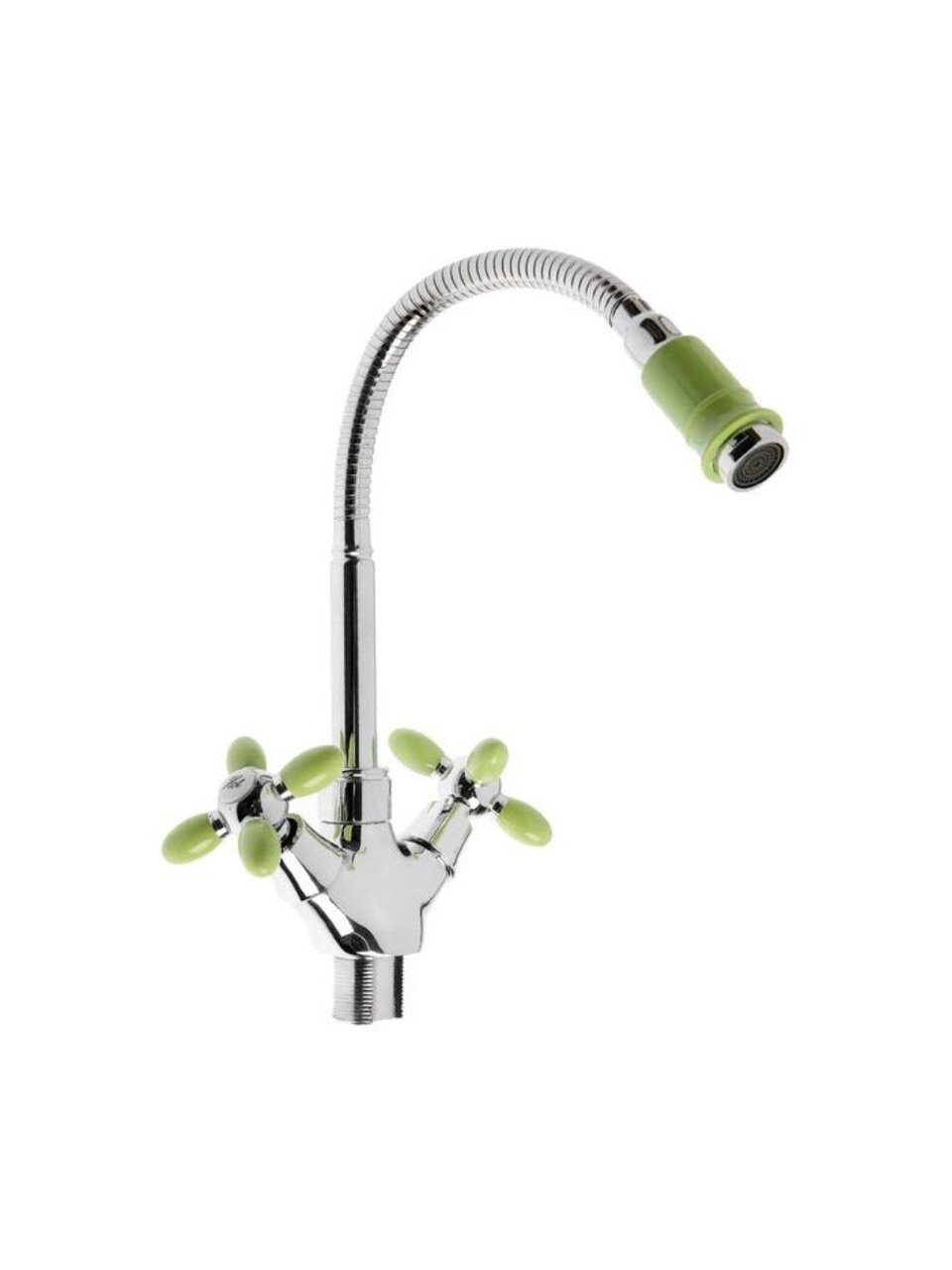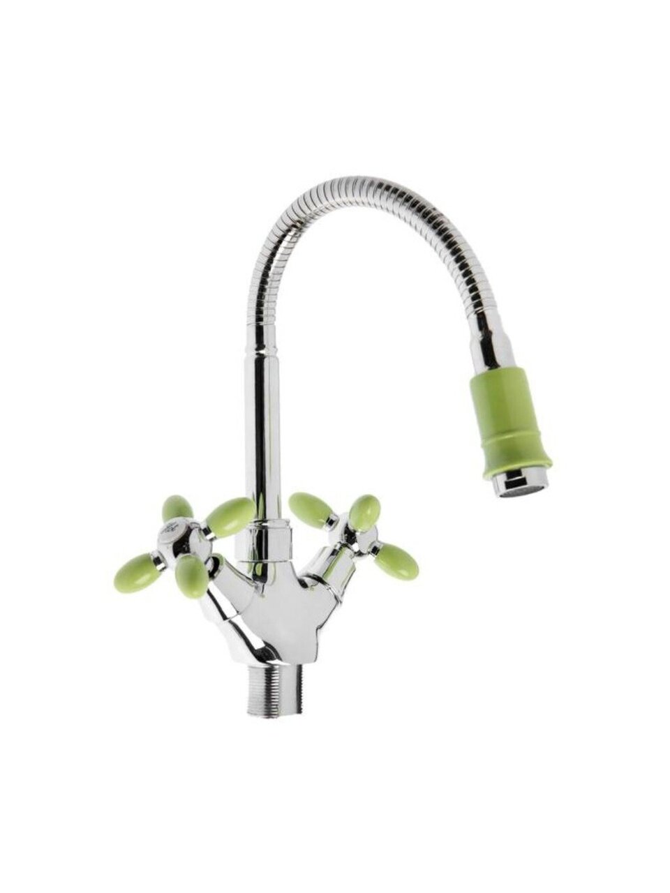 Смеситель для кухни Эверест с гибким изливом — удобно мыть посуду и наполнять высокую посуду, стильный зеленый акцент для современной кухни за разумную цену.