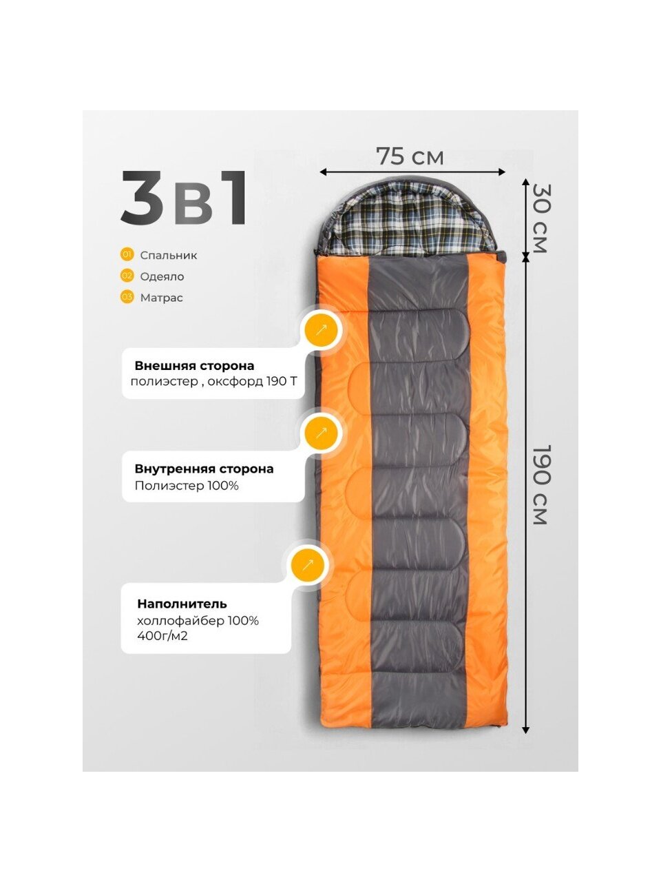 Вы можете приобрести «Спальный мешок кокон, 190+30х75 см, -10 °C, 1 слой, оксфорд, полиэстер, хлопок, 400гр/м2, серый» и другие товары в нашем интернет-магазине в Таганроге по низким ценам и с бесплатным самовывозом.