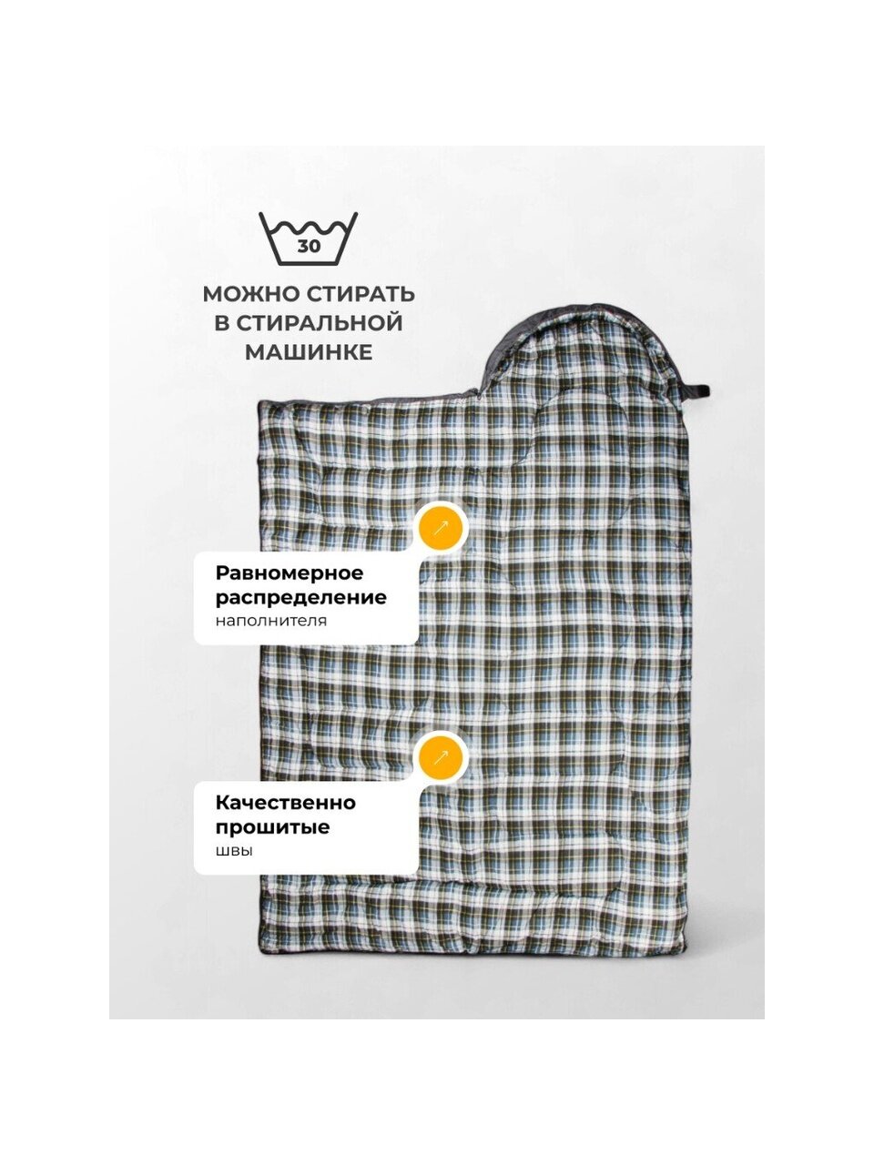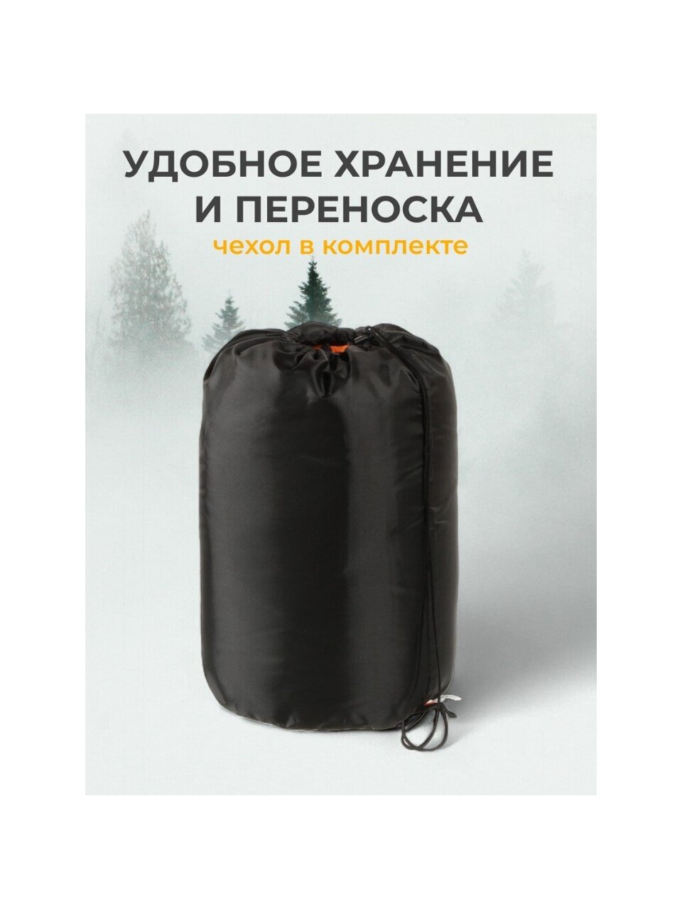- Внешний материал надежно защищает спальный мешок от влаги и повреждений.