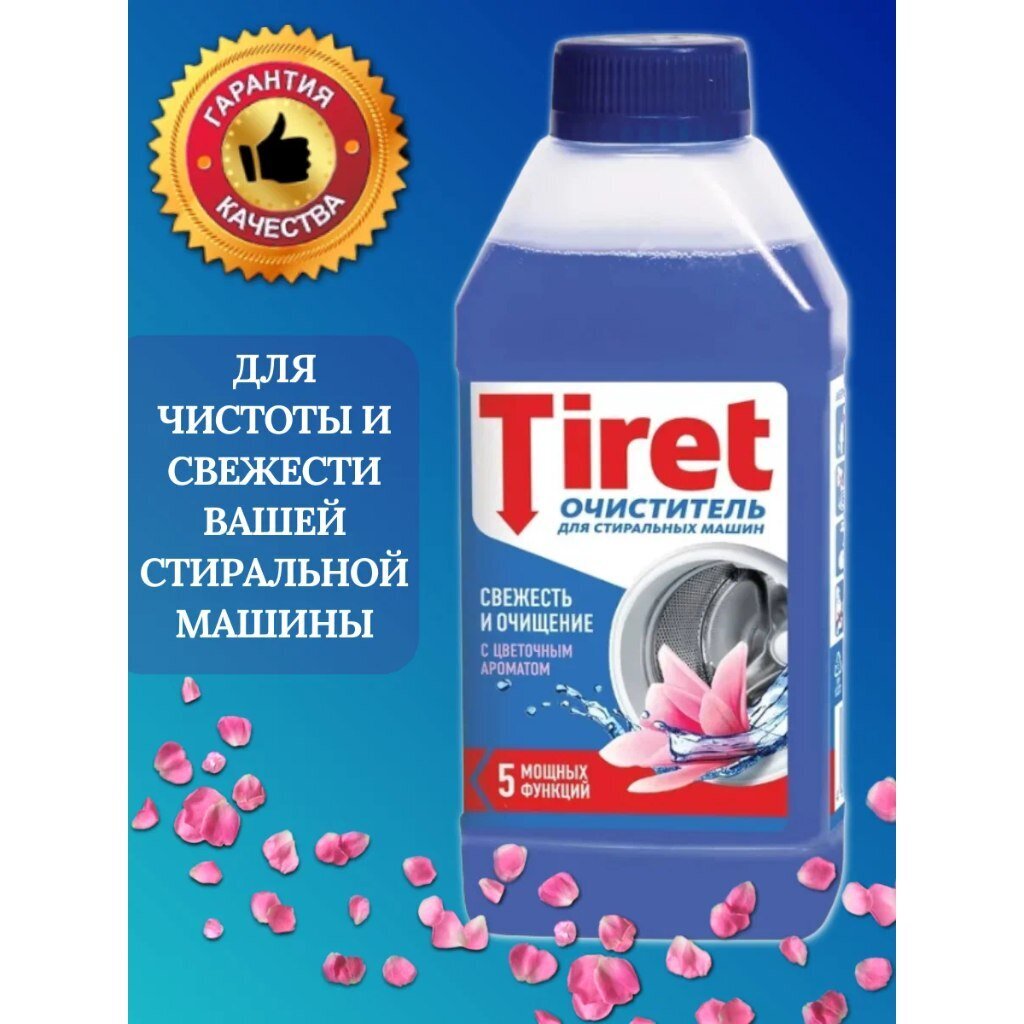 Средство для стиральных машин Tiret комплексно очищает стиральную машину. Для наилучшего результата следуйте инструкции: убедитесь, что внутри стиральной машины нет белья. Открутите крышку. Добавьте небольшое количество средства на губку и протрите отсеки для моющего средства и ополаскивателя. Залейте остаток жидкости в отсек для моющего средства. Запустите температурный режим 60 °С. Рекомендуется запускать 2 пустых цикла в год при температурном режиме 60 °С, используя каждый раз 1 бутылку.