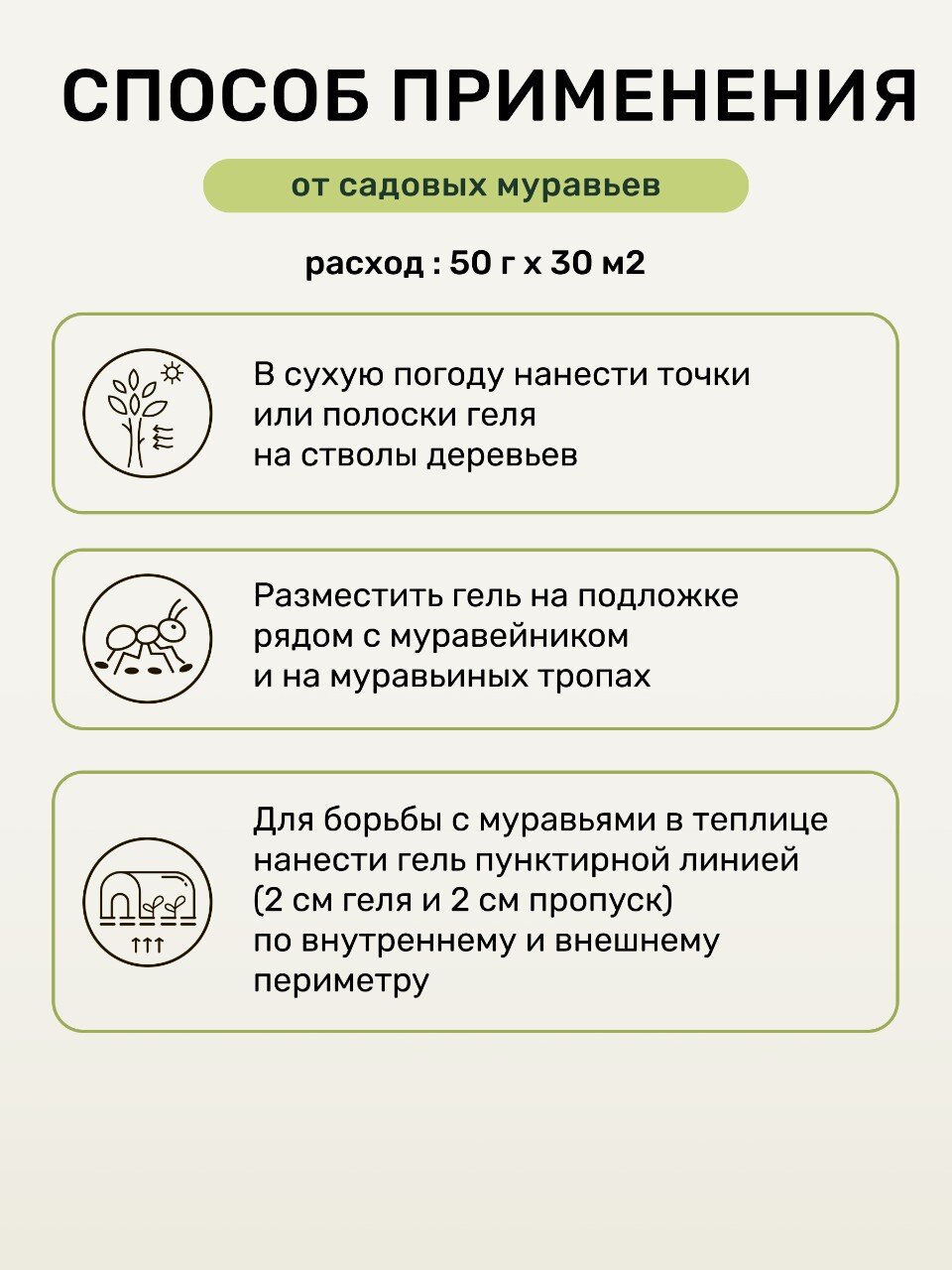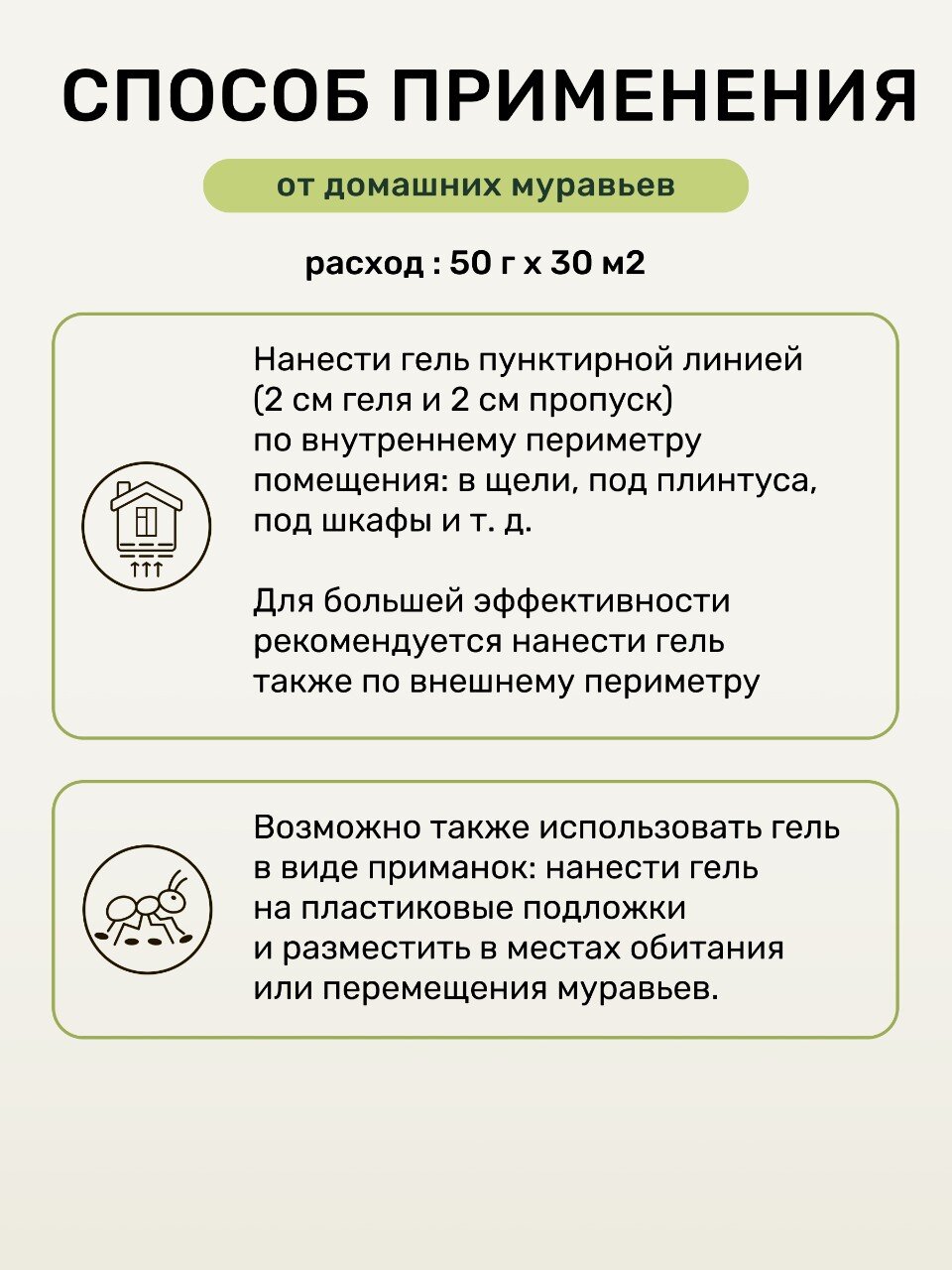 В упаковке 50 г, предназначен для борьбы с домашними и садовыми муравьями. Удобно использовать для квартиры, дачи, офиса.