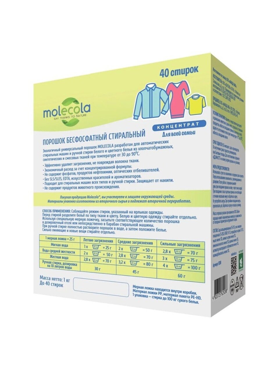 Стиральный порошок Molecola, 1 кг, универсальный - фото 1 от пользователяСтиральный порошок Molecola, 1 кг, универсальный - фото 2 от пользователя