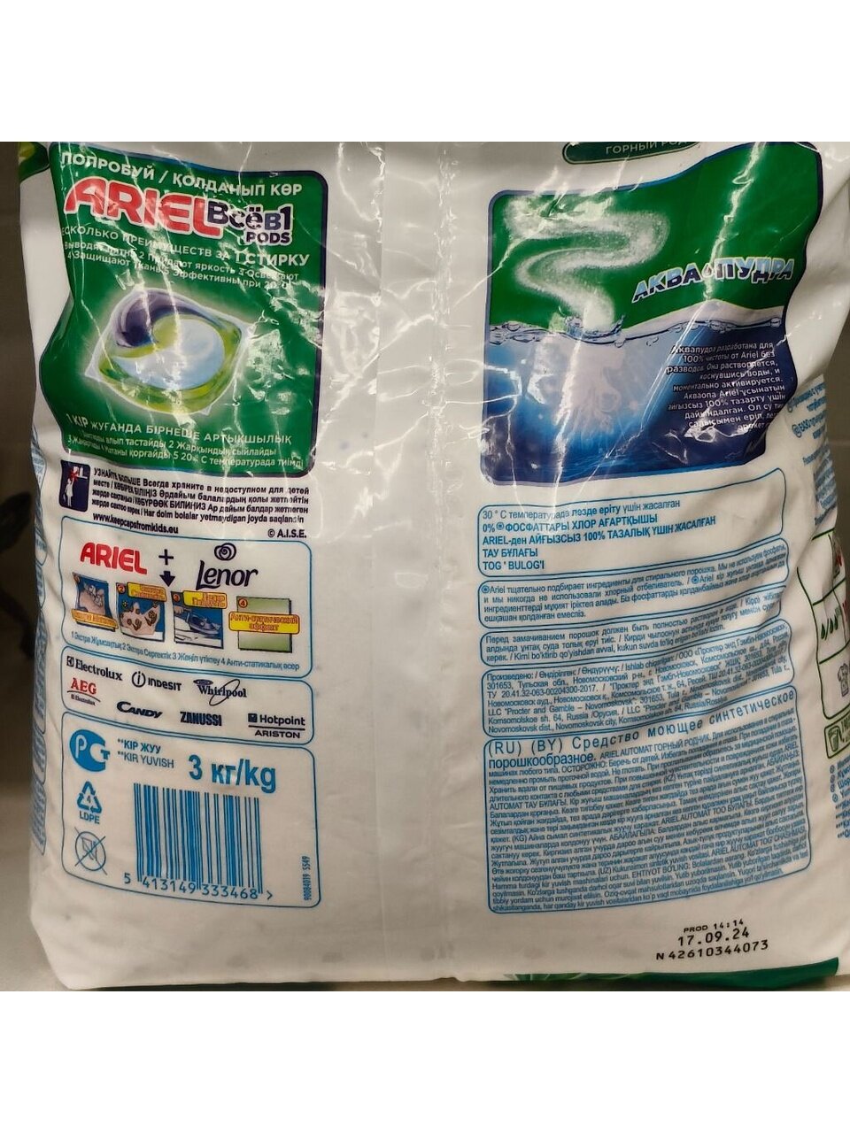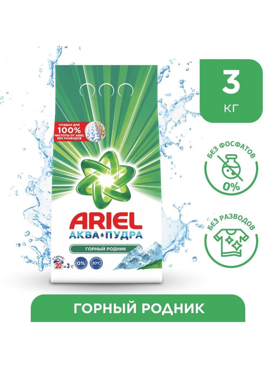 Ariel Аквапудра Горный родник позволяет поддерживать одежду всей семьи в отличном состоянии и идеальной чистоте. Теперь ваши любимые вещи прослужат вам еще дольше.