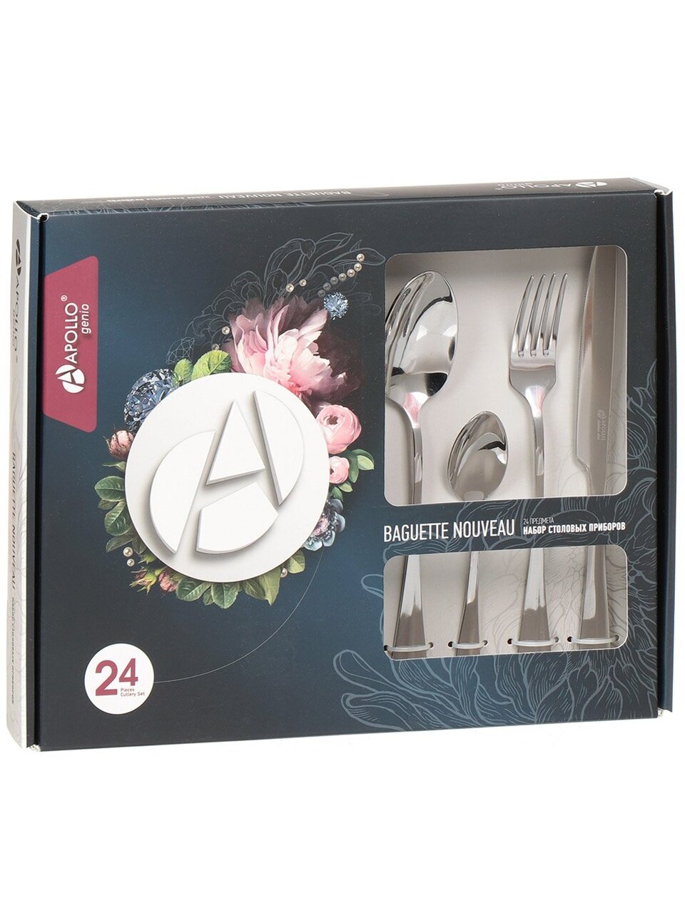 Набор столовых приборов Apollo Baguette Nouveau на 6 персон: современный дизайн, прочная нержавеющая сталь, идеален для подарка и ежедневного использования.