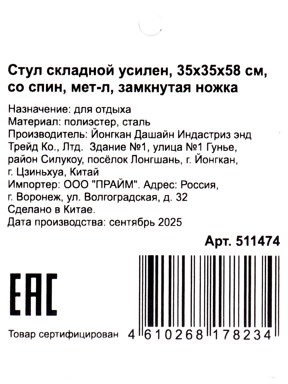 Складной стул со спинкой — это оптимальное решение для тех, кто ищет недорогой и прочный вариант мебели для дачи или дома. Усиленный металлический каркас с замкнутой ножкой обеспечивает устойчивость даже на неровной поверхности, а тканевая обивка делает сиденье более комфортным. Как выбрать стул для дачи или пикника? Обратите внимание на сочетание легкости и прочности — именно такие параметры реализованы в данной модели.