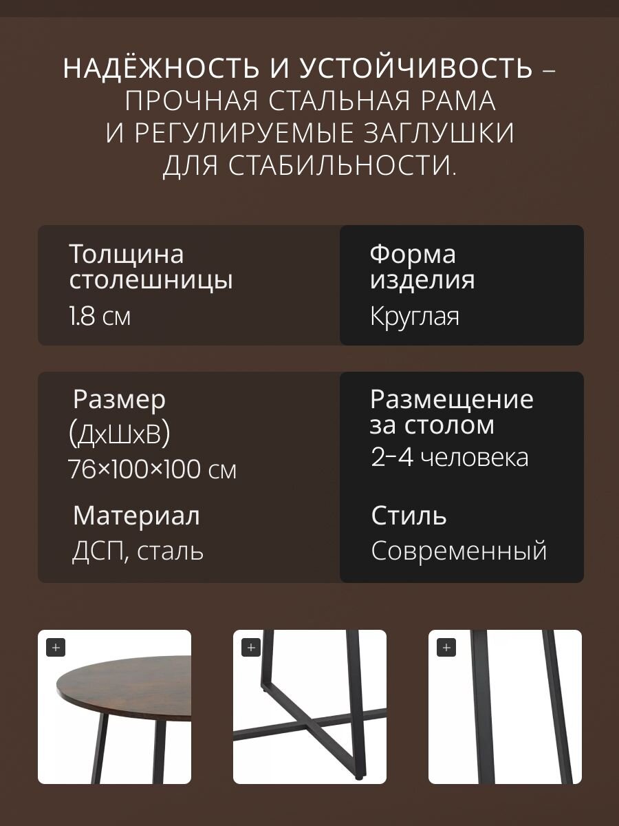 Вы можете приобрести «Стол обеденный 100х100х76 см, сталь, круглый, Лофт, KDT811B01» и другие товары в нашем интернет-магазине в Коврове по низким ценам и с бесплатным самовывозом.