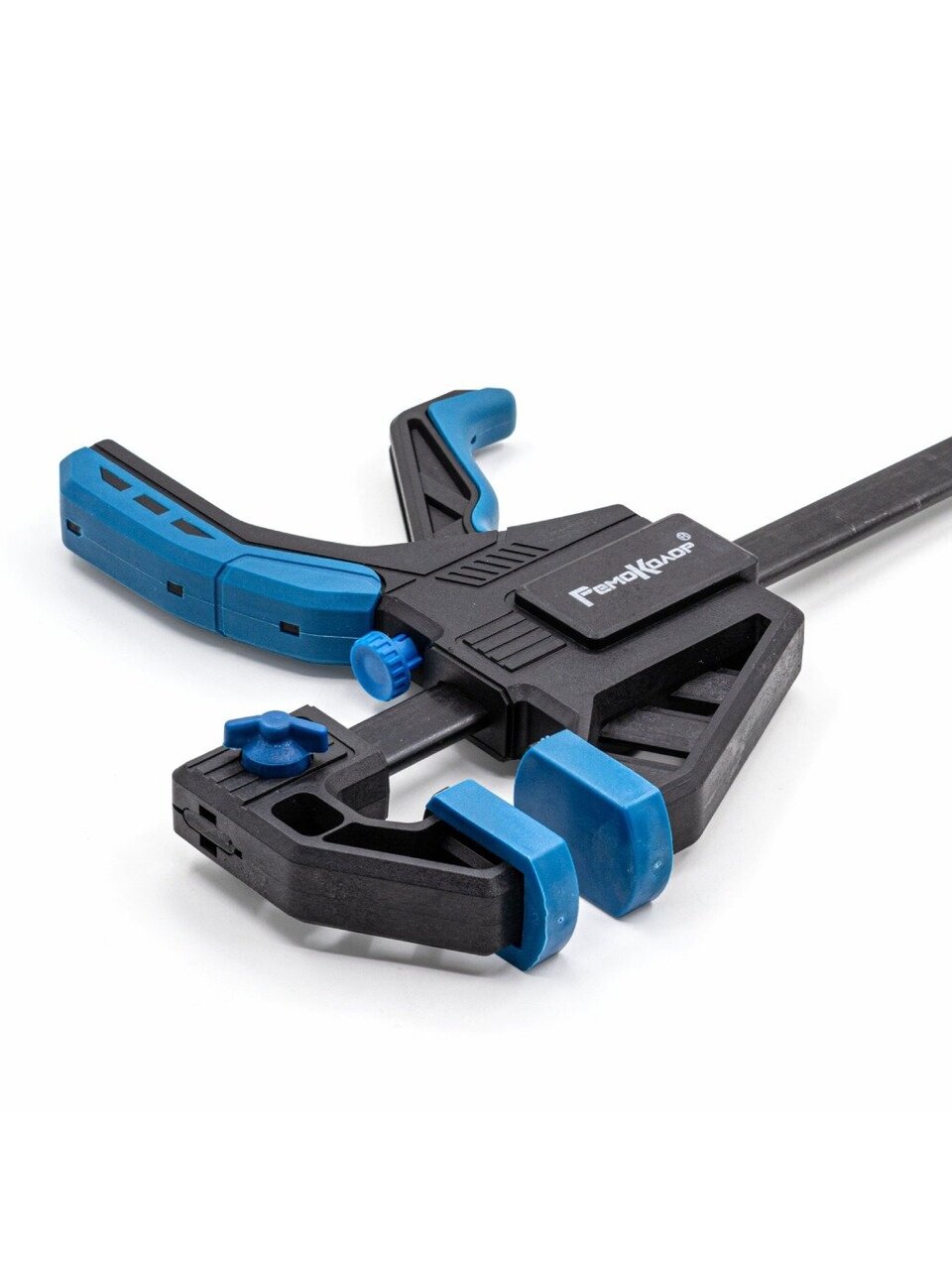 F-образная струбцина имеет вид рамы с подвижным элементом, движение которого и позволяет осуществлять фиксацию. Подобное оснащение определенно заинтересует профессионалов. Струбцина производится из качественных материалов.