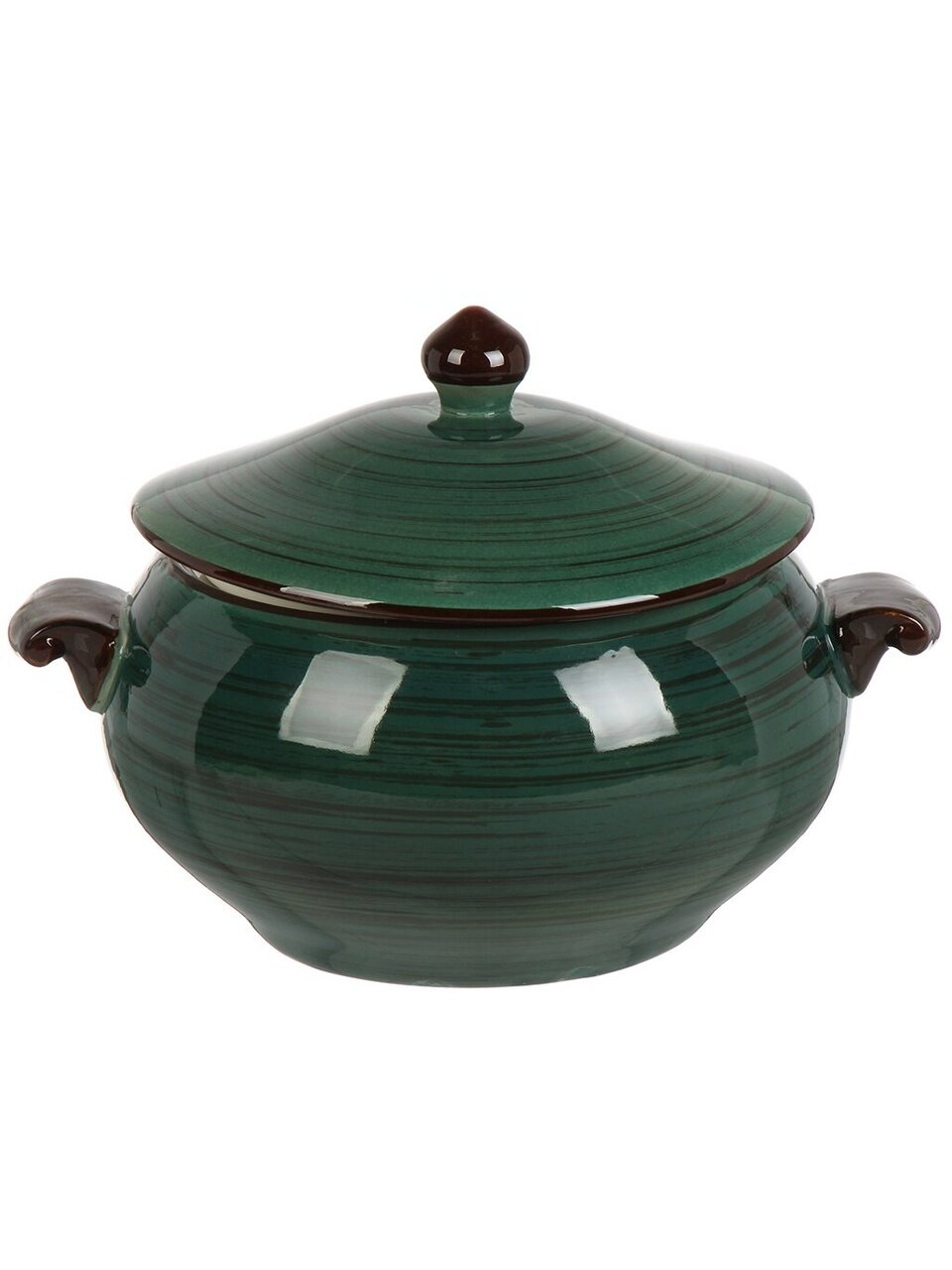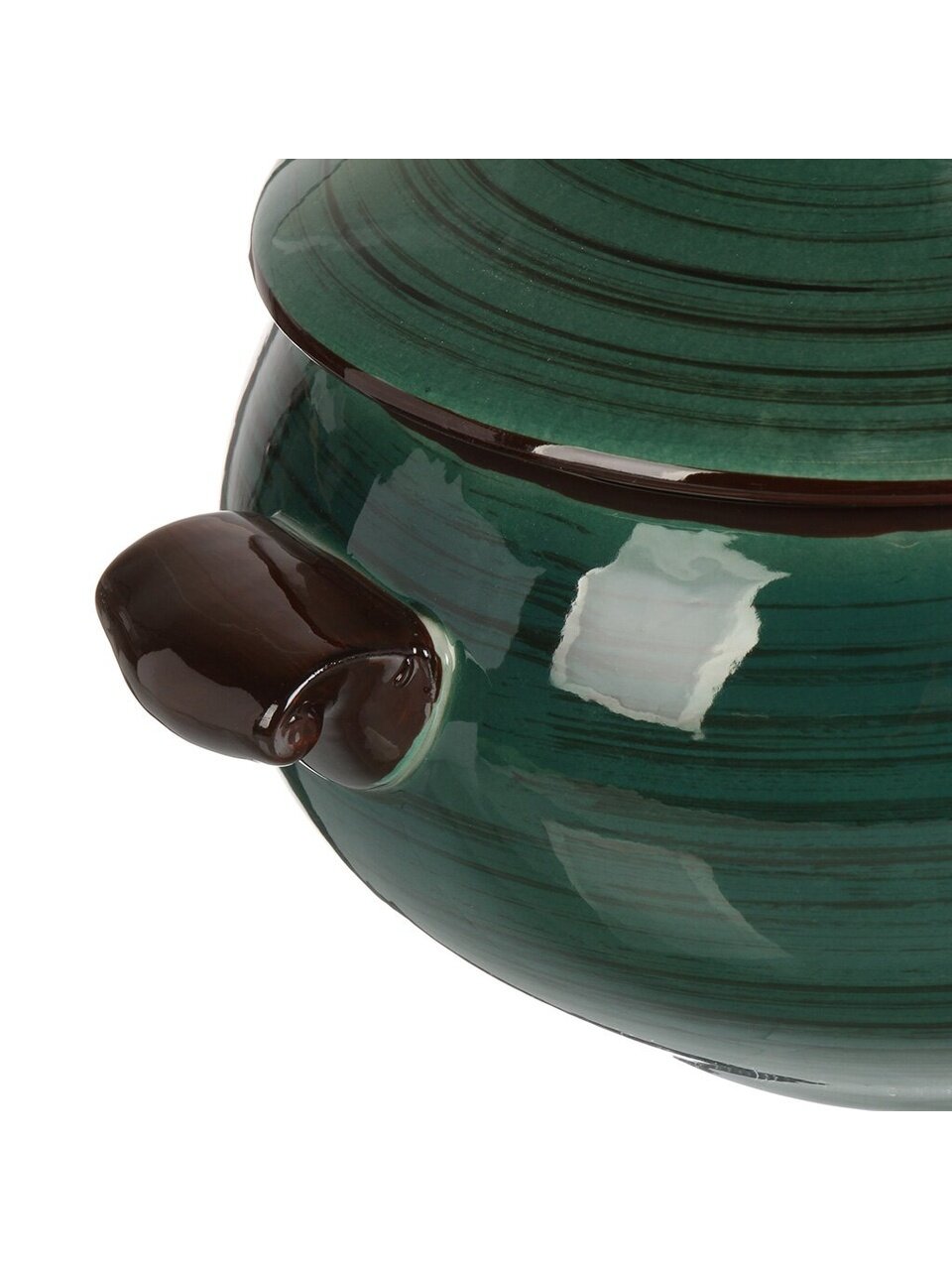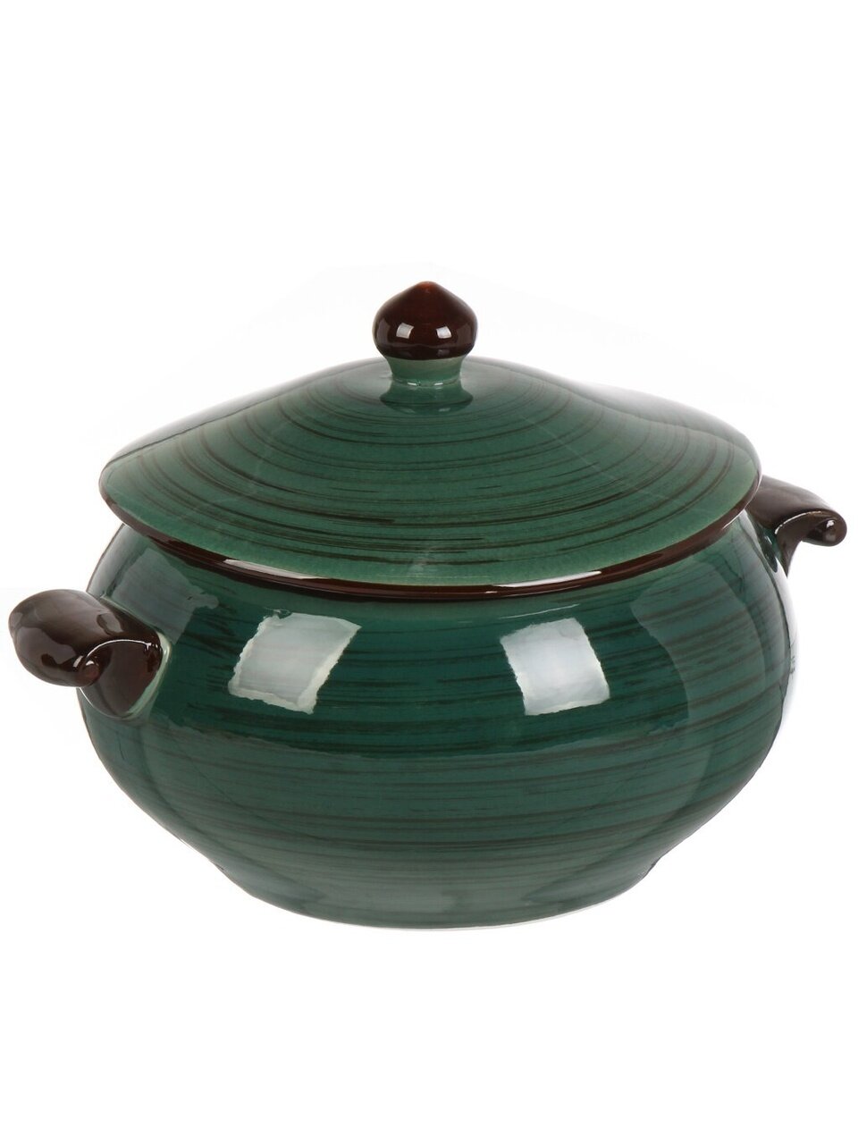 Керамический супник "Малахит" с размерами 25.3х20.3х16.8 см изготовлен с учетом всех современных требований к качеству и безопасности. Он создан для тех, кто ценит не только функциональность, но и стиль, ведь его изумрудный цвет и изысканный дизайн способны украсить любой обеденный стол.