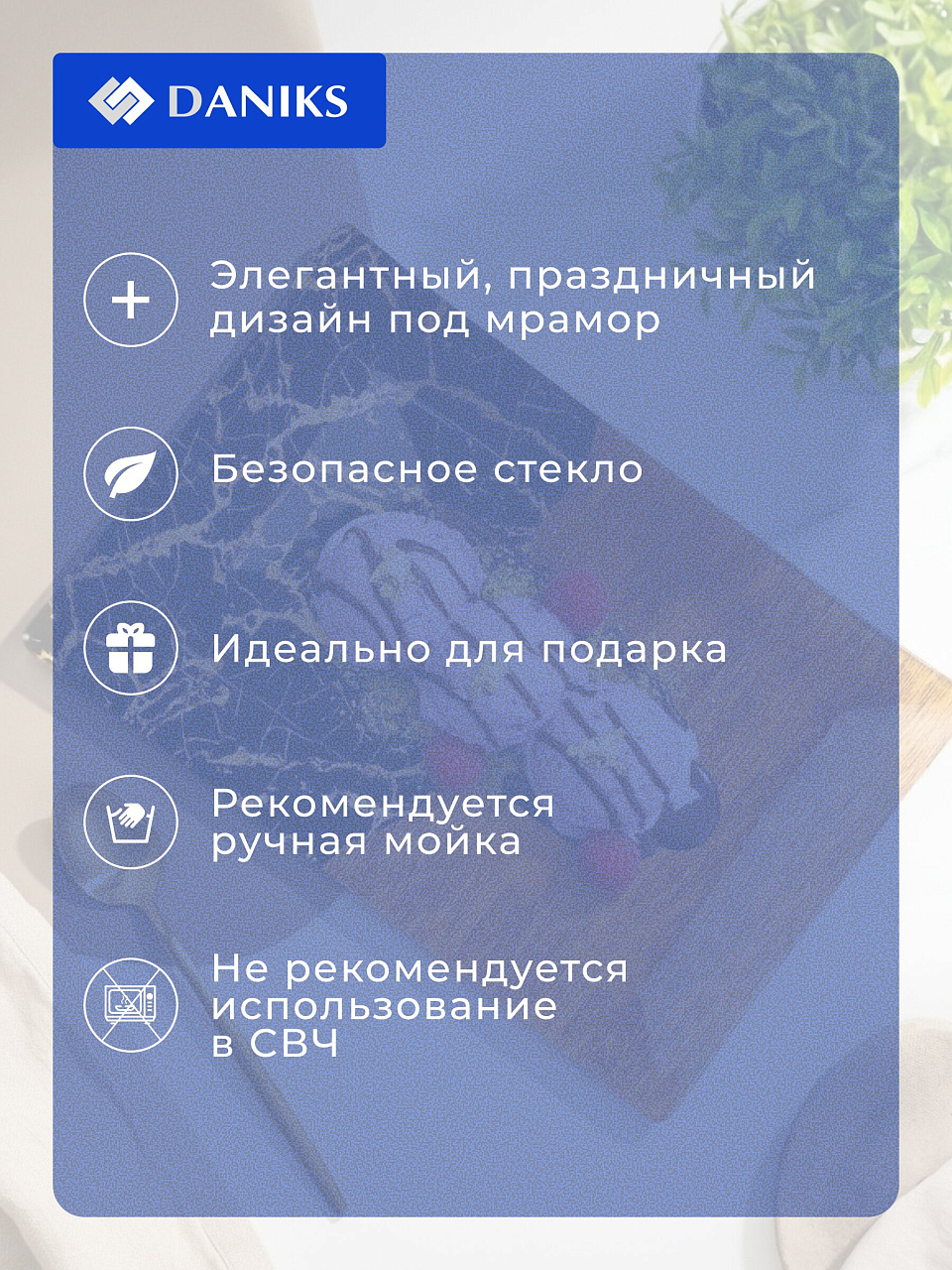 Многие спрашивают: чем отличается такая тарелка от обычной круглой? Прямоугольная форма облегчает размещение ассорти, канапе или мини-десертов, а стекло не впитывает запахи и легко моется вручную. Если вы выбираете, какая тарелка лучше для подарка — вариант Daniks Лофт универсален, подойдет как для дома, так и для дачи. В отличие от керамики или пластика, стекло устойчиво к царапинам и сохраняет внешний вид при частом использовании.